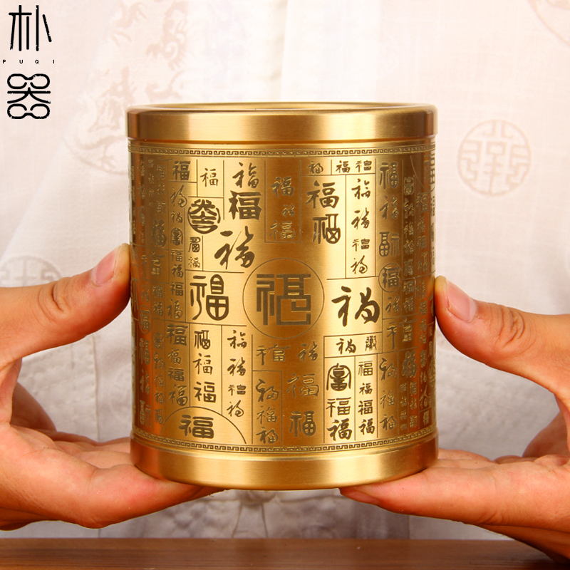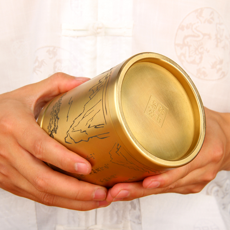 大号铜实心笔筒s摆件配实木底座办公桌摆件