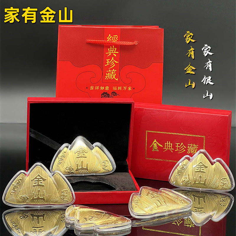 2025新款金箔金山家有金山开运金币招财摆件保险会销办公桌面摆饰