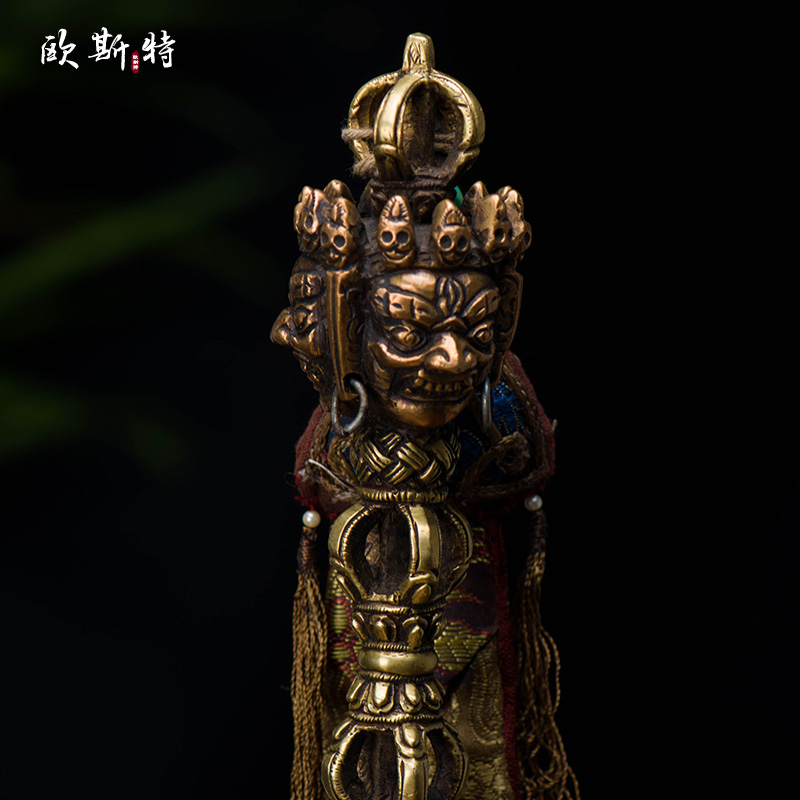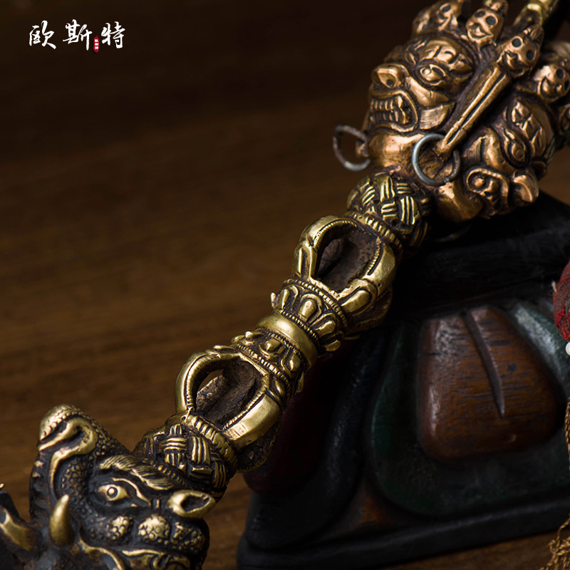 欧斯特 尼泊尔进口上铜下铁含飘带金刚含底座杵 佛具客厅橛摆件