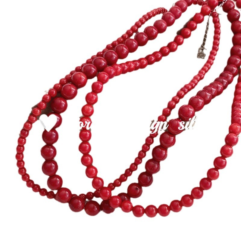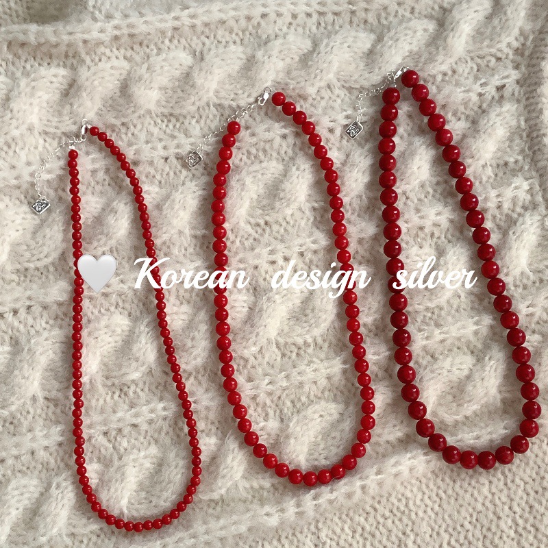 韩国轻奢级感锁骨链 S925纯银简约红色珠子项链 圣诞新年限定女