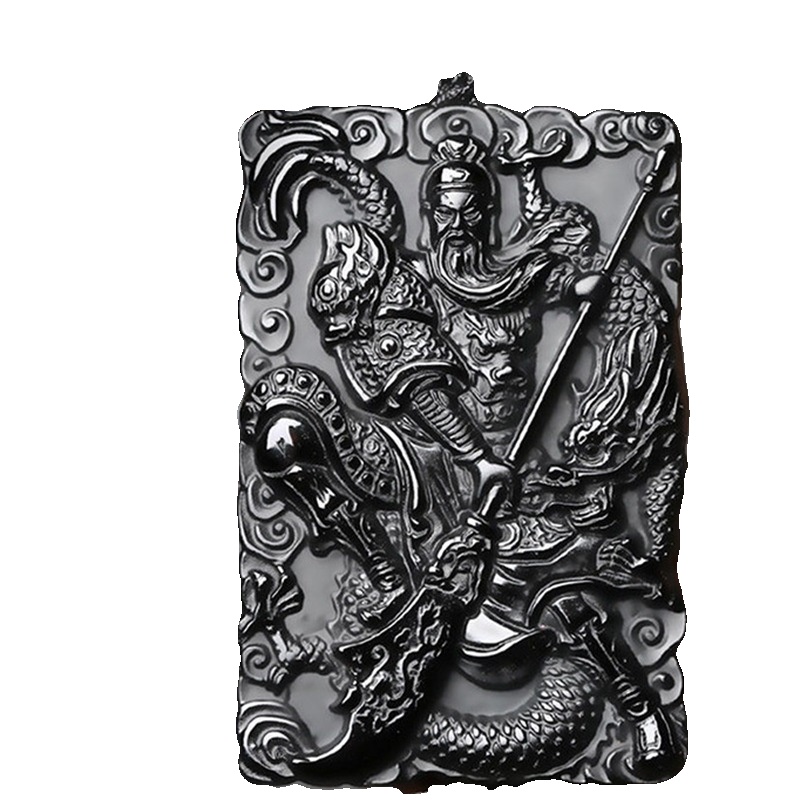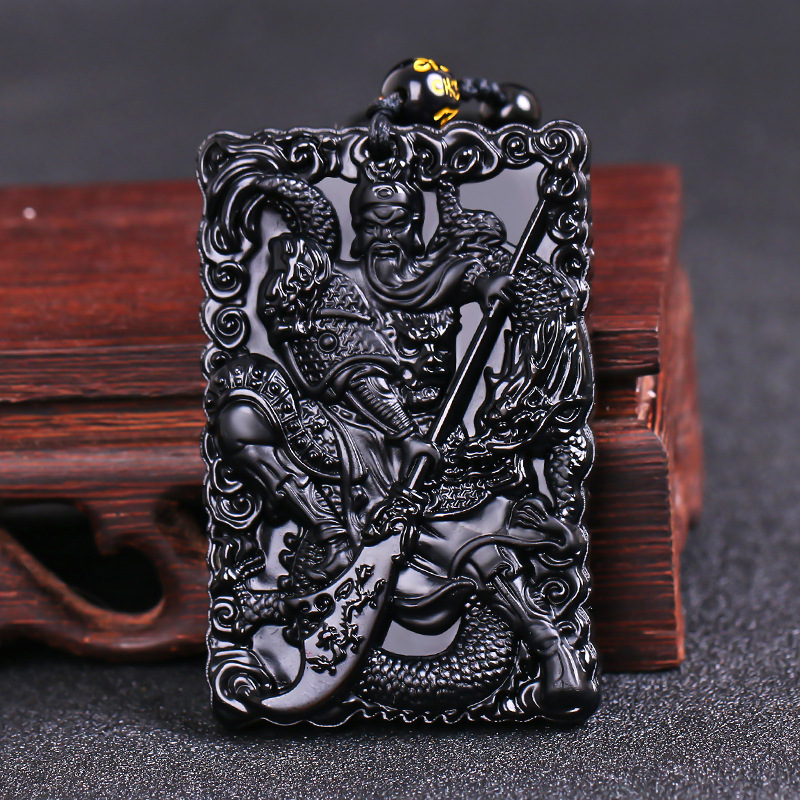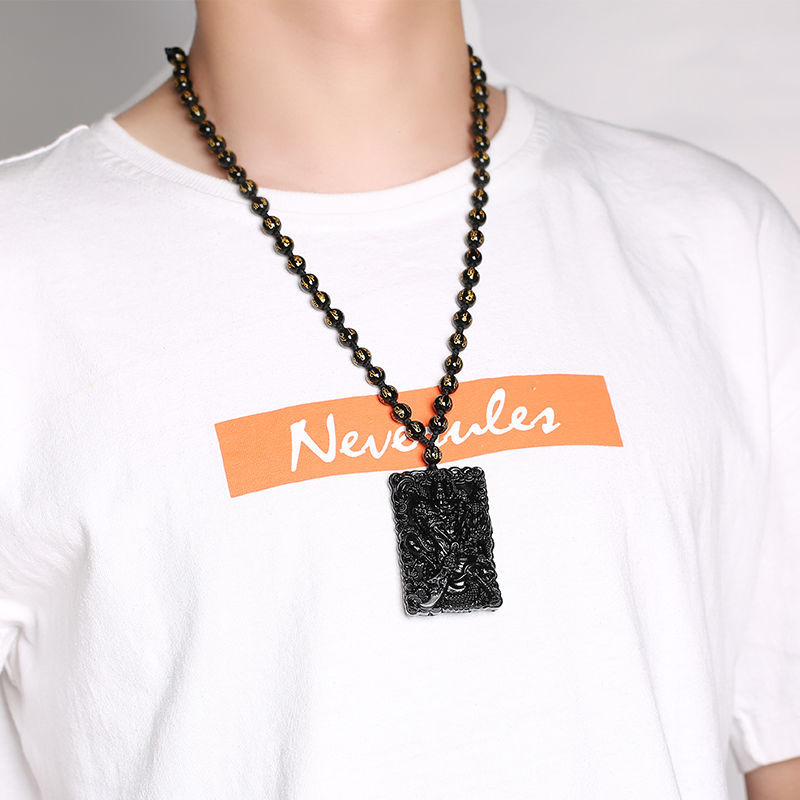 关二爷黑曜石项链男双面关公吊坠男女款武财神霸气潮流款链子手链