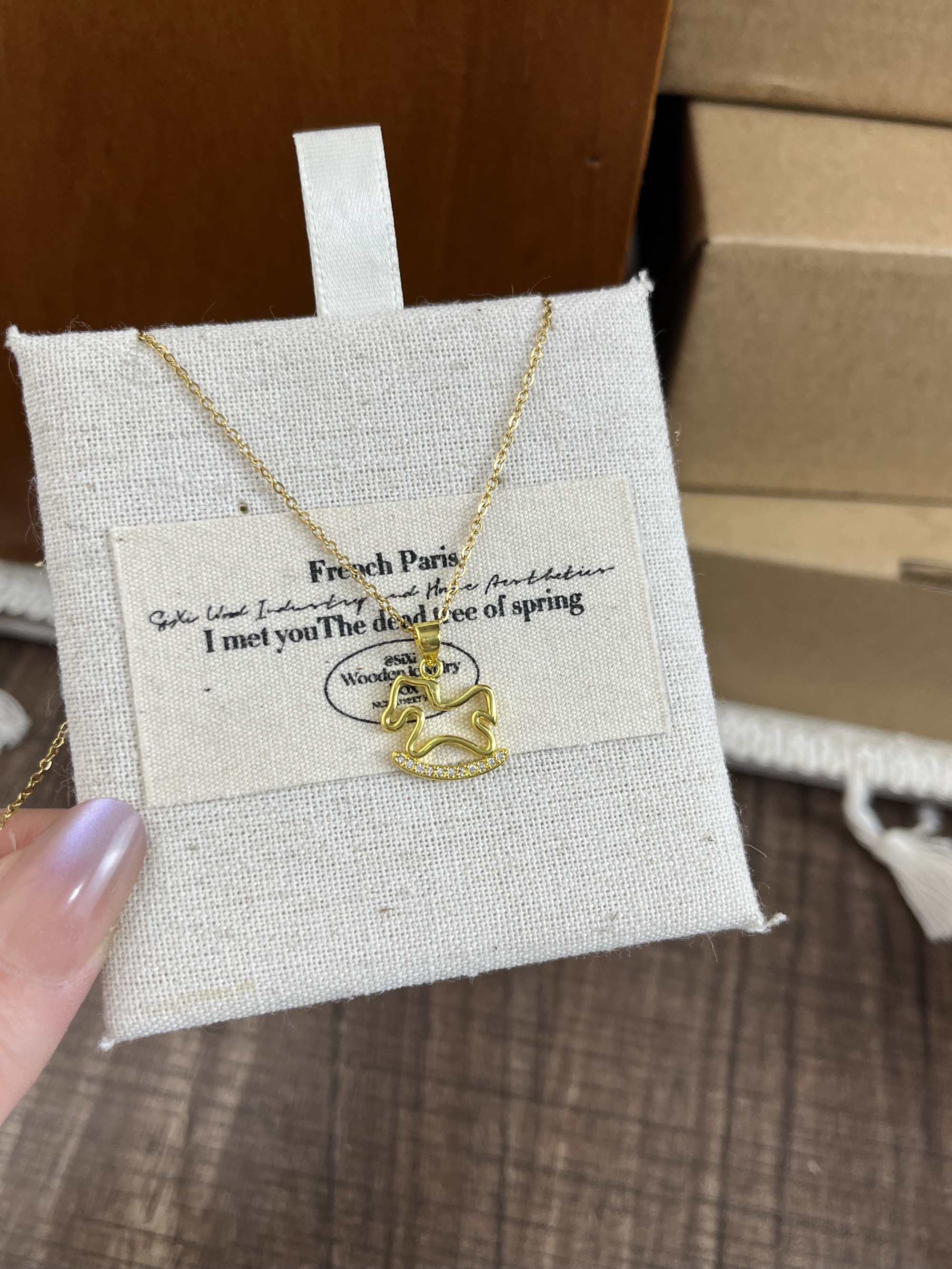 可爱童趣小木马项链女日常百搭设计感锁骨链潮流项饰