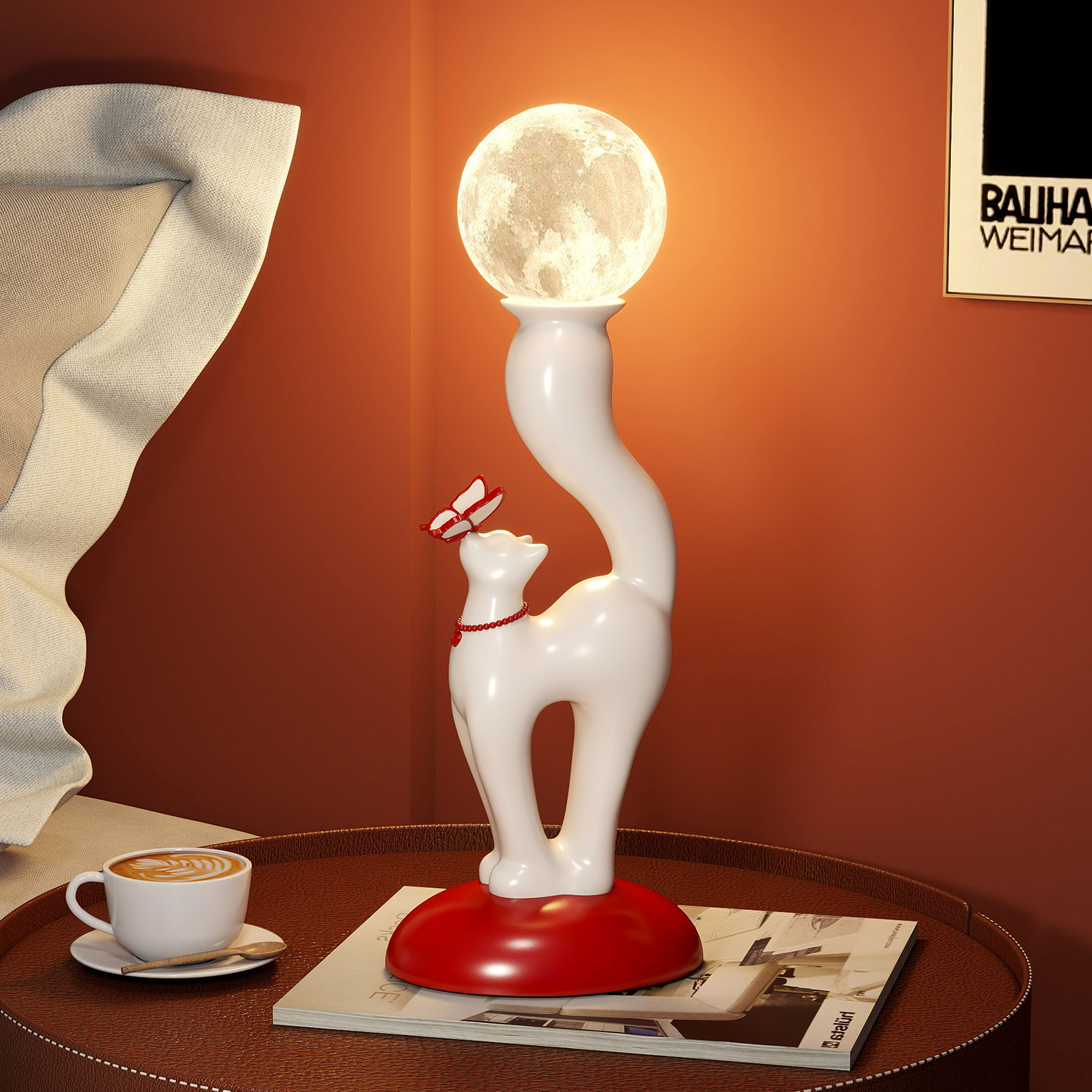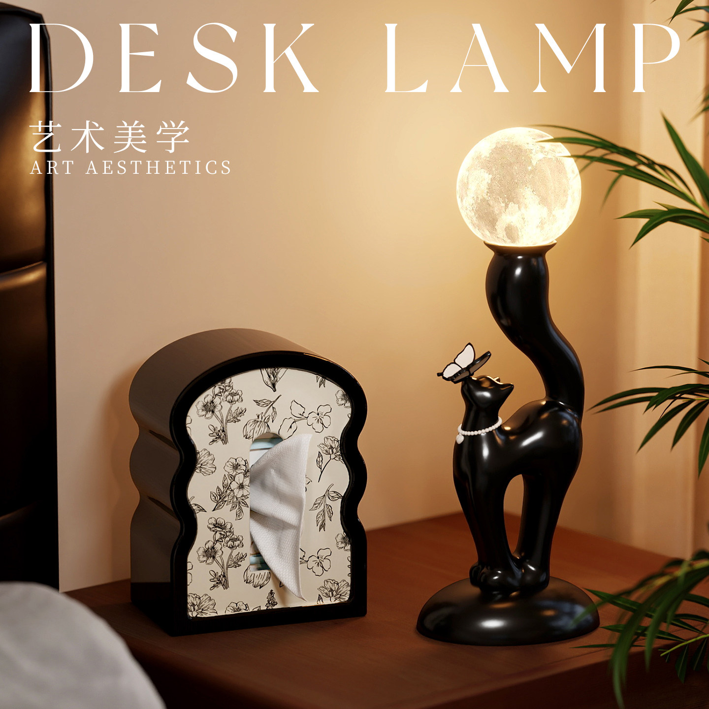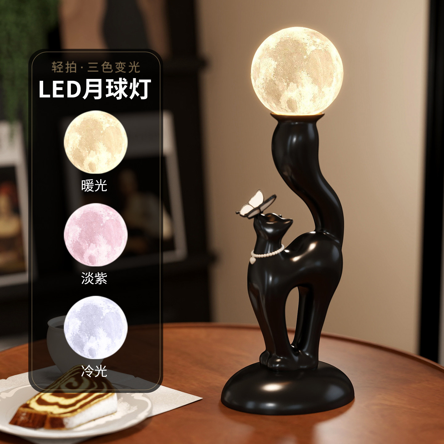 复古法式风卡通猫咪台灯卧室夜灯床头灯中古装饰摆件乔迁新居礼品