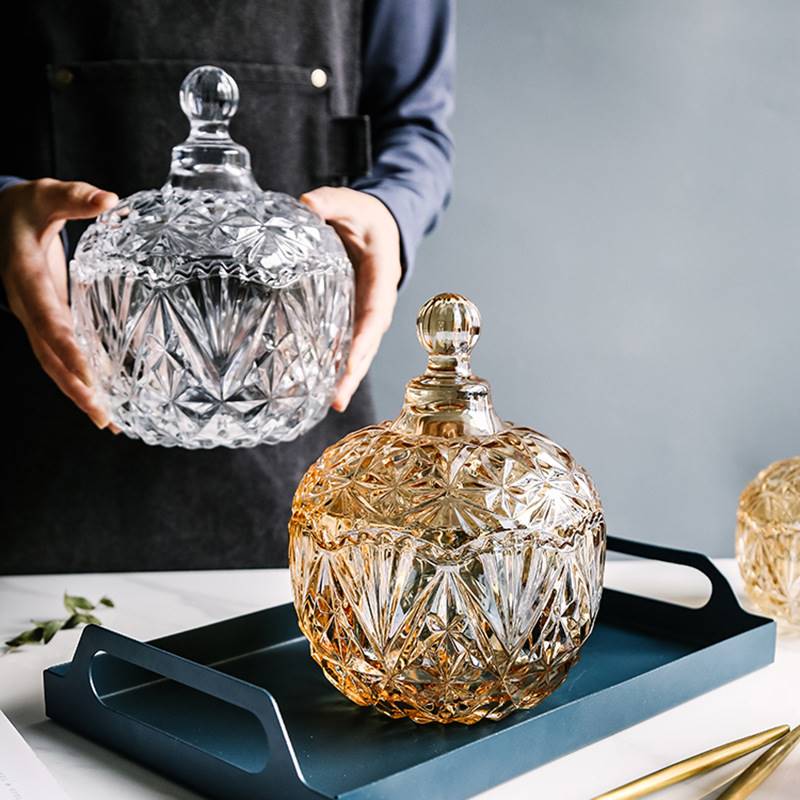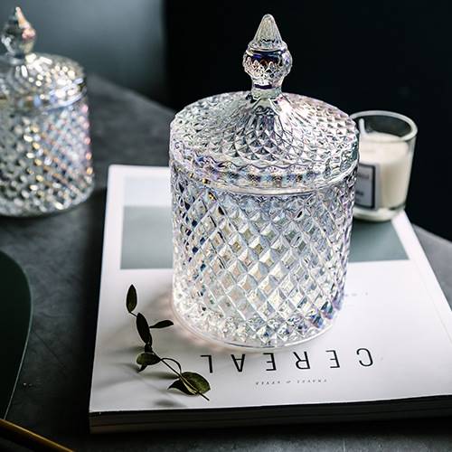 彩色带盖玻璃糖果罐欧式储物罐摆件创意装饰收纳盒透明玻璃调味罐