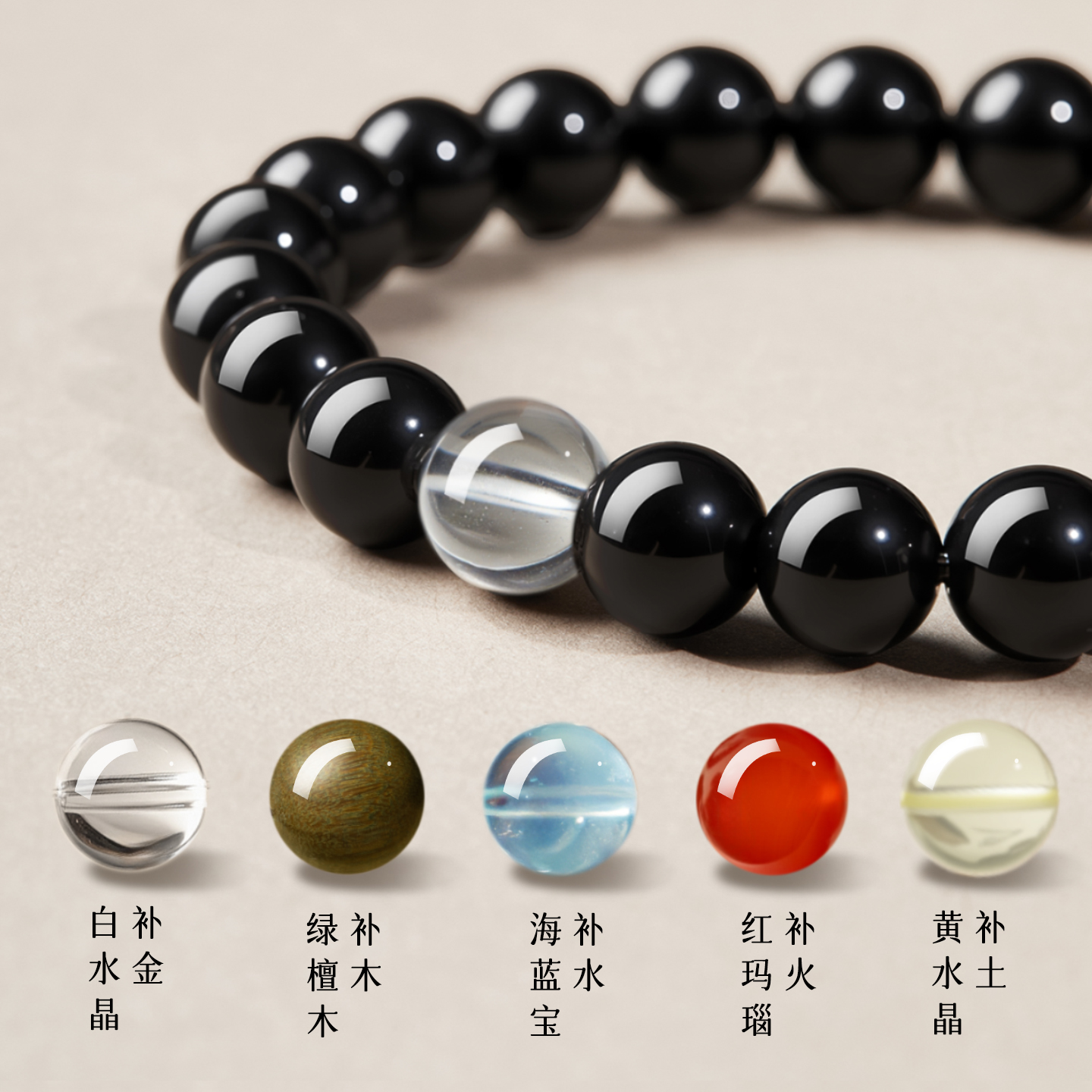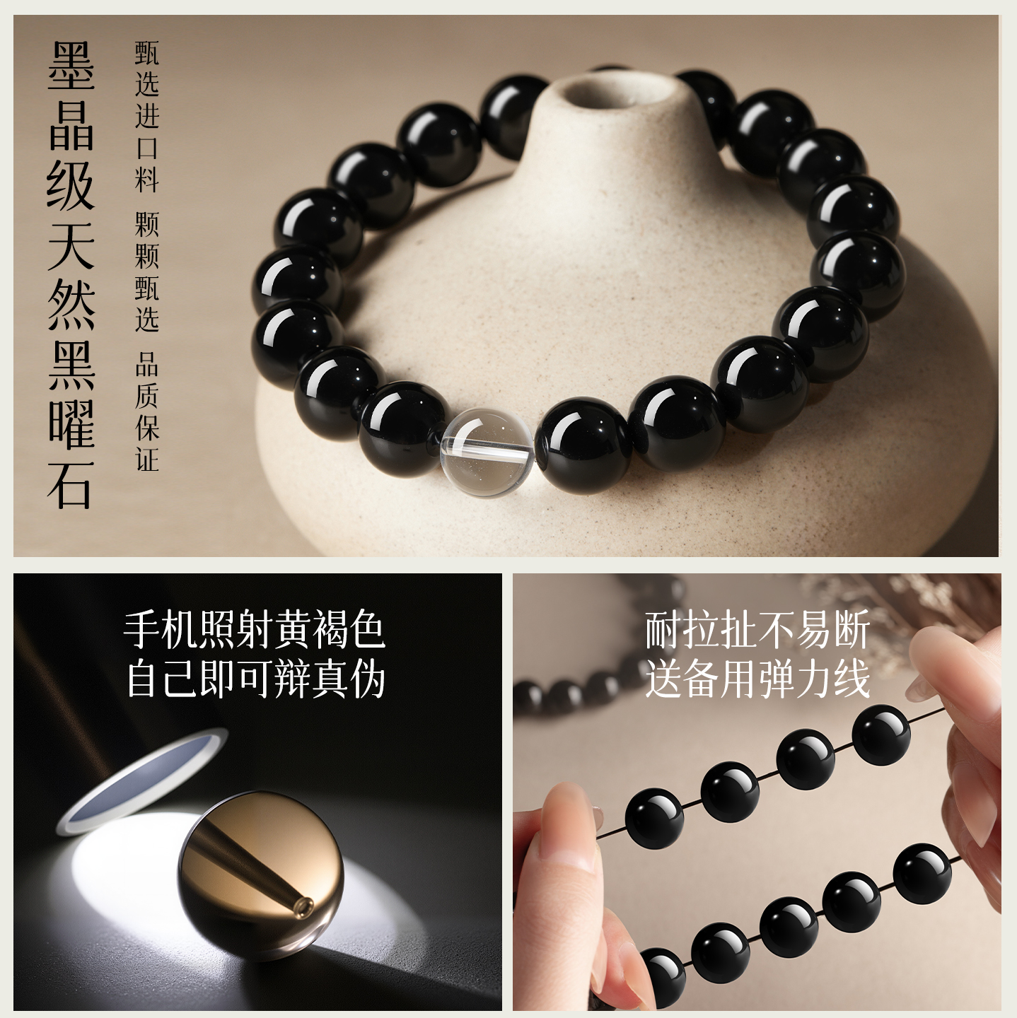 天然黑曜石手串官方旗舰店正品补水补火海蓝宝手链招财转运珠礼物