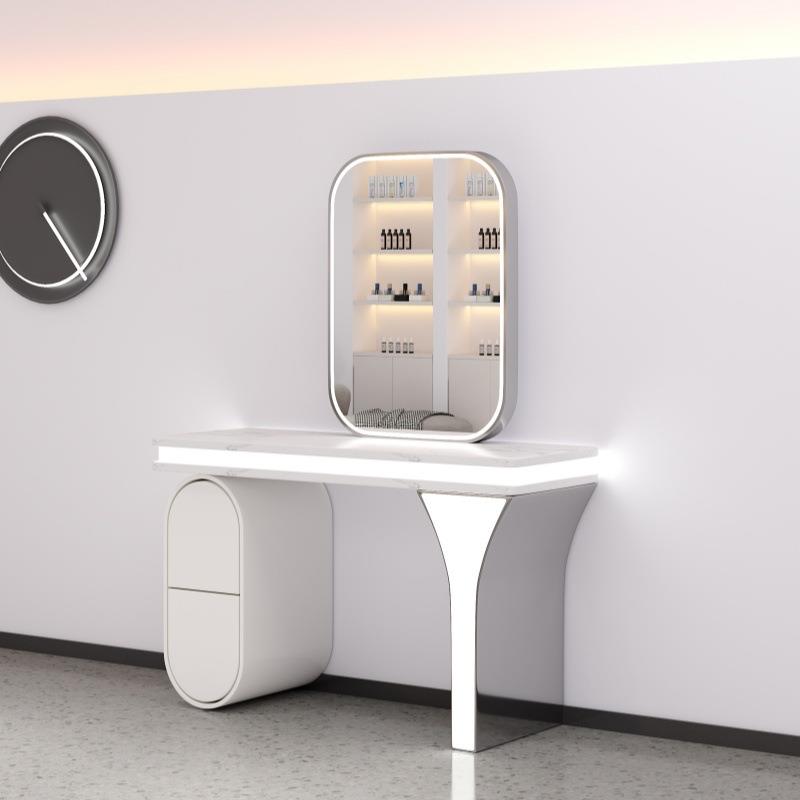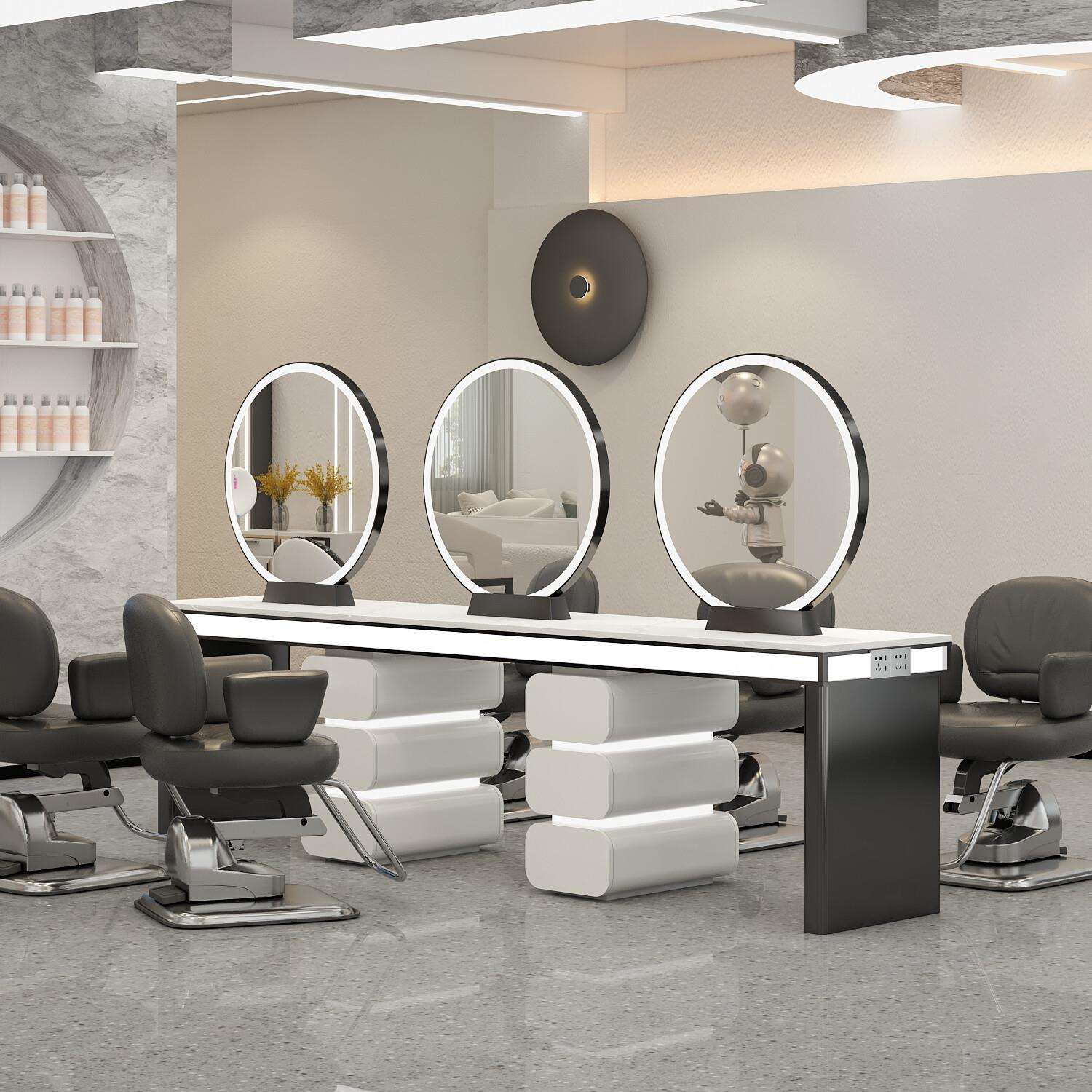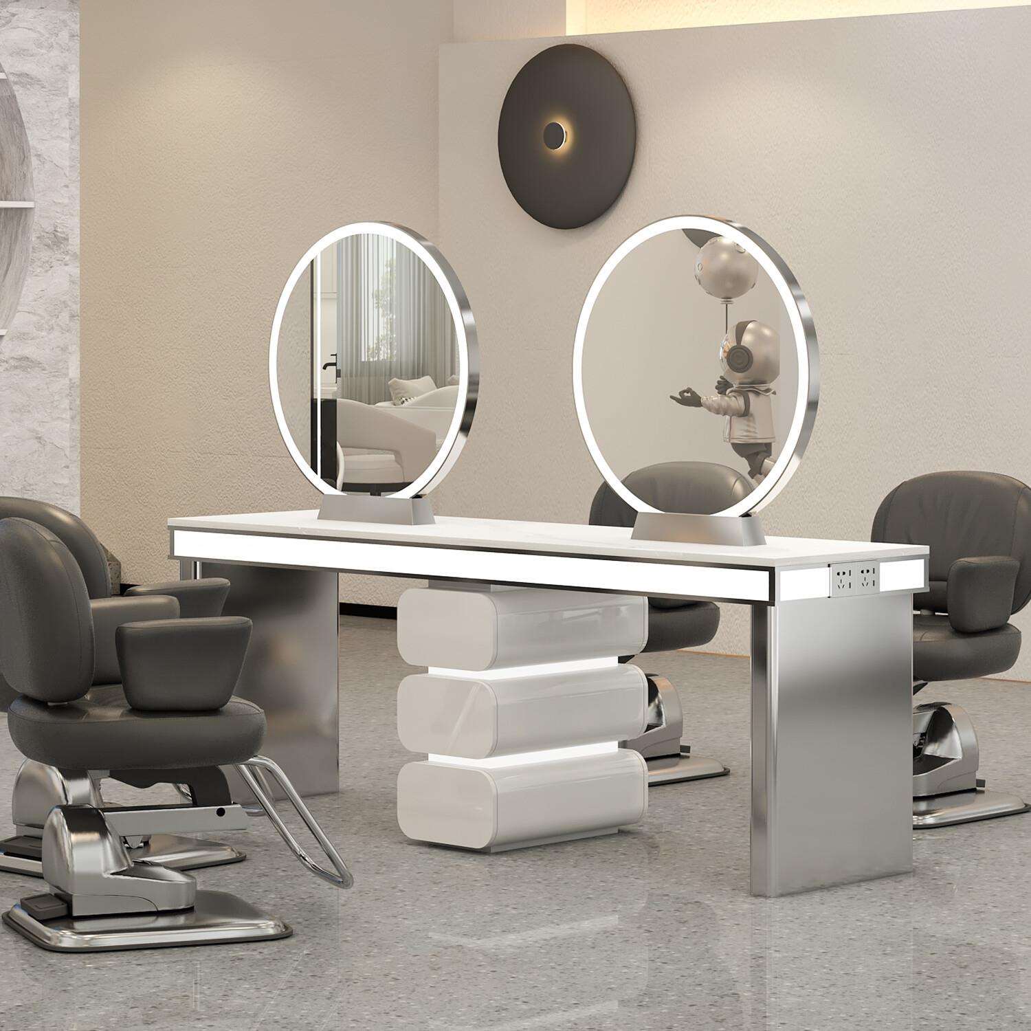 新款理发店镜子发廊专用烫染镜台美发店剪发六人镜柜一体双面镜