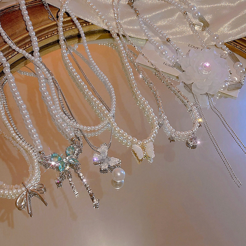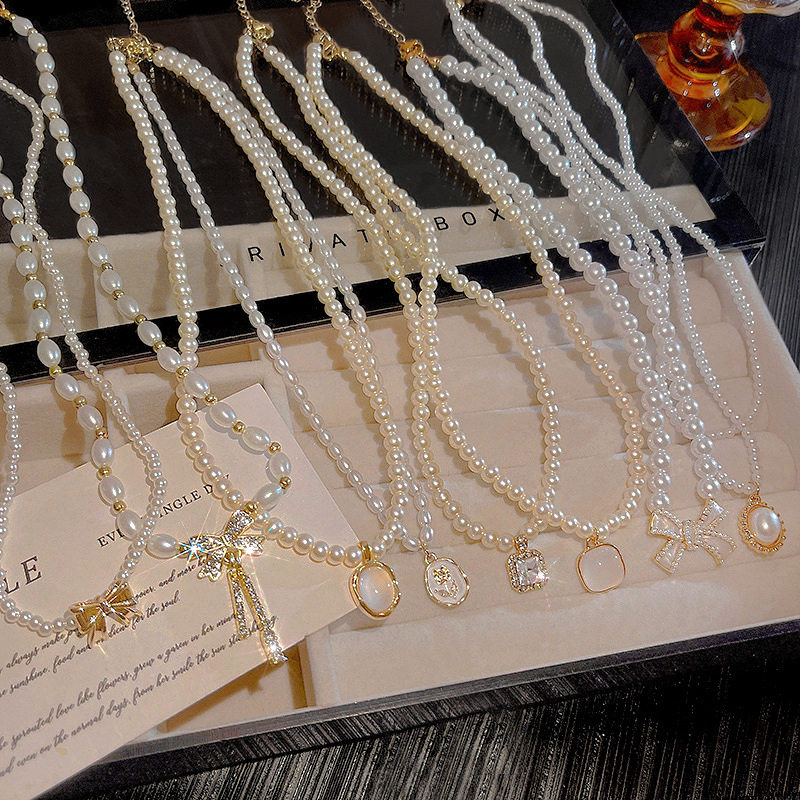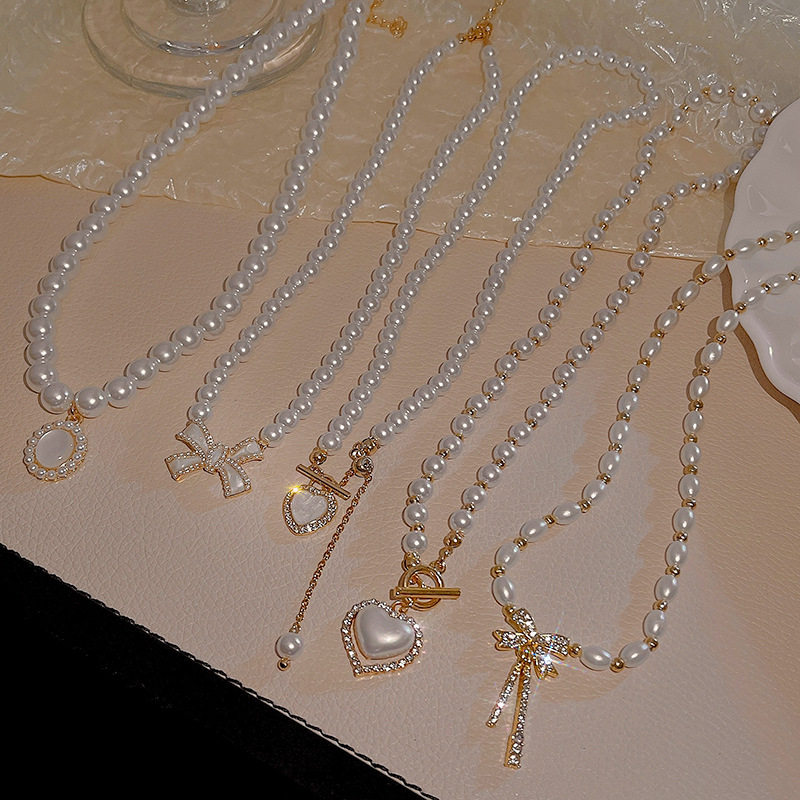 法式复古珍珠项链女款时尚镶钻爱心气质锁骨链高级感2025新款配饰