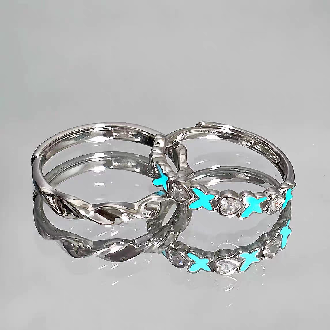 当前位置:首页>商品详情>纯银发光蝶恋仪式感对戒夜光情侣戒指开口戒一对可调节送女友