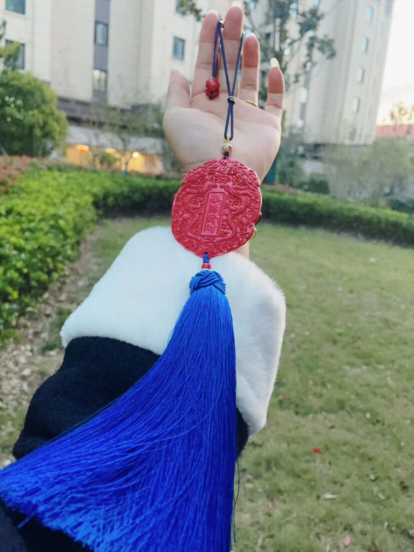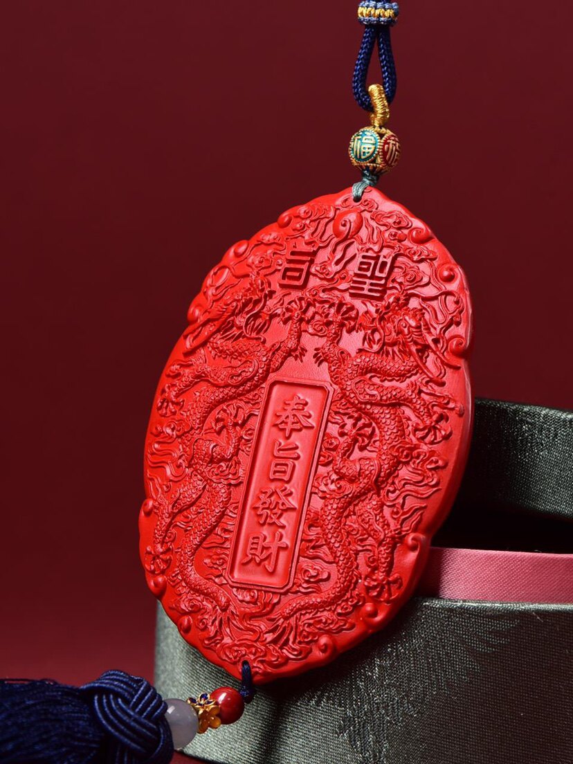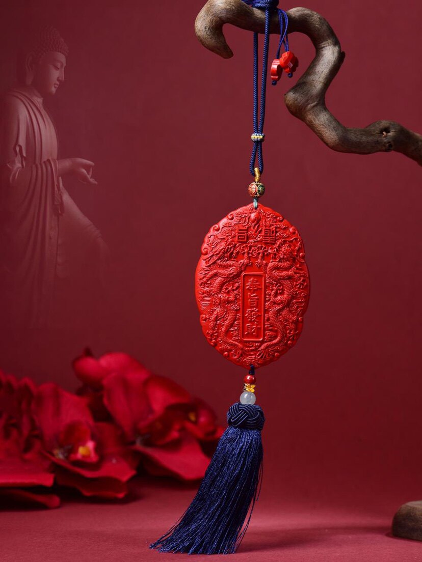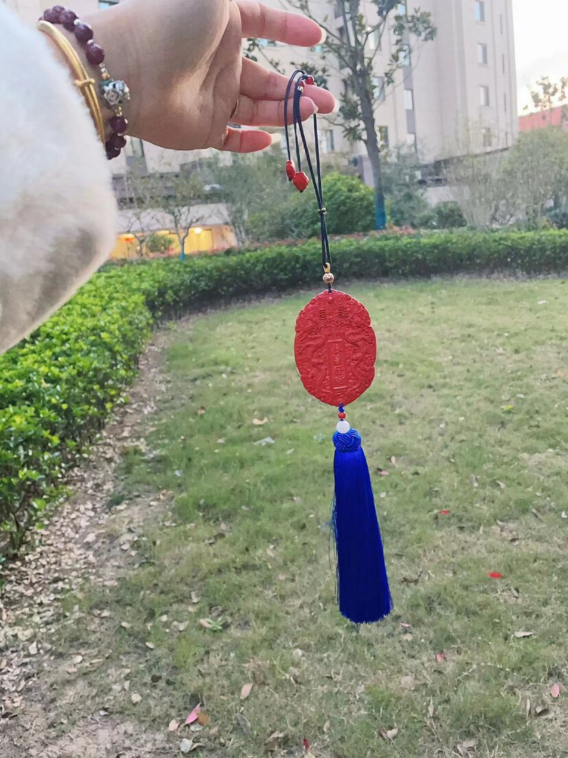高含量红砂奉旨发米汽车挂家中玄关牌双龙牌保真朱砂藏蓝色大流苏