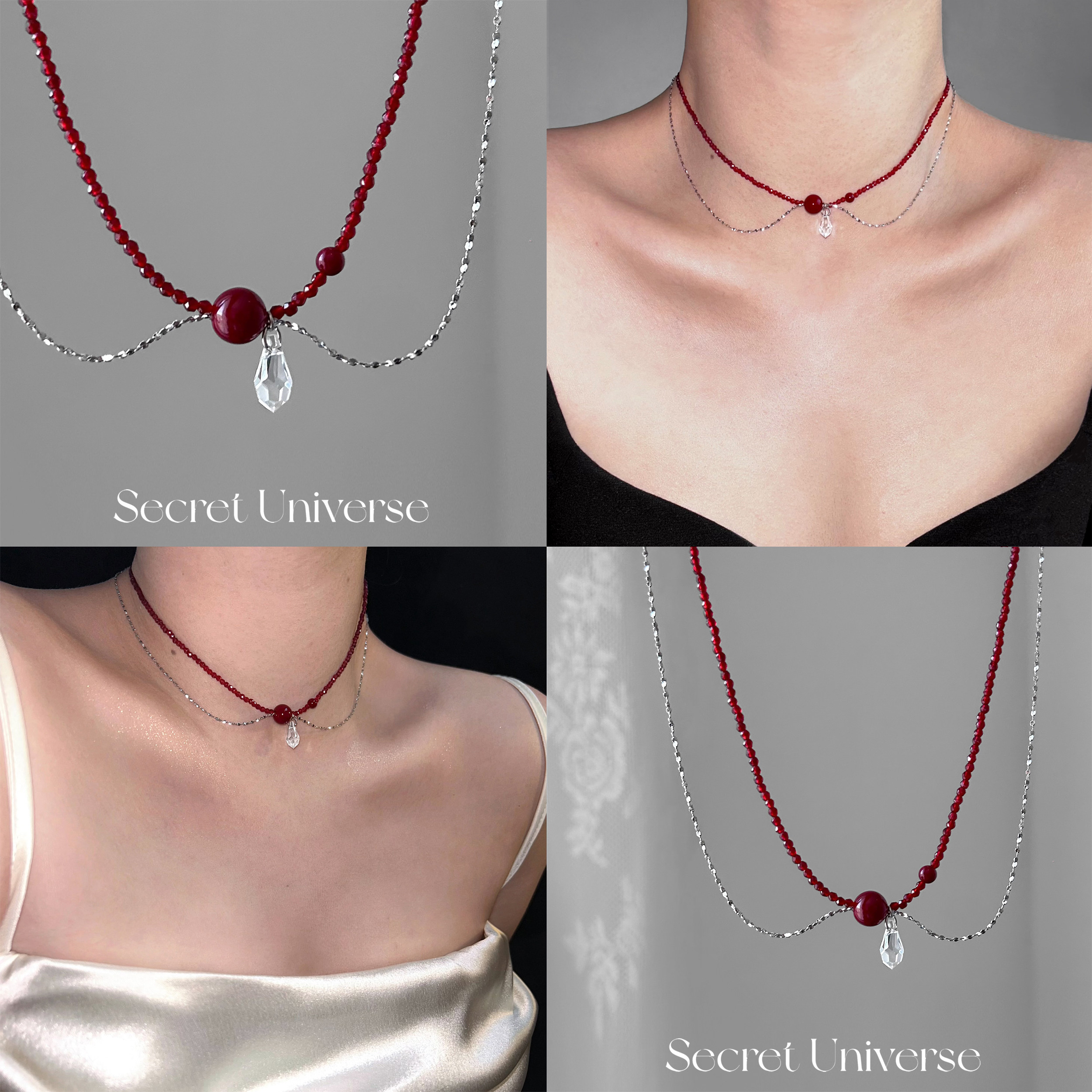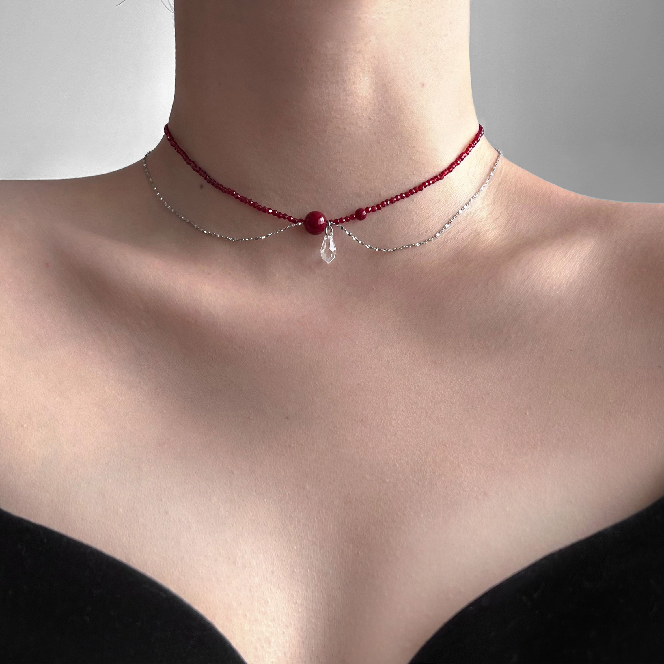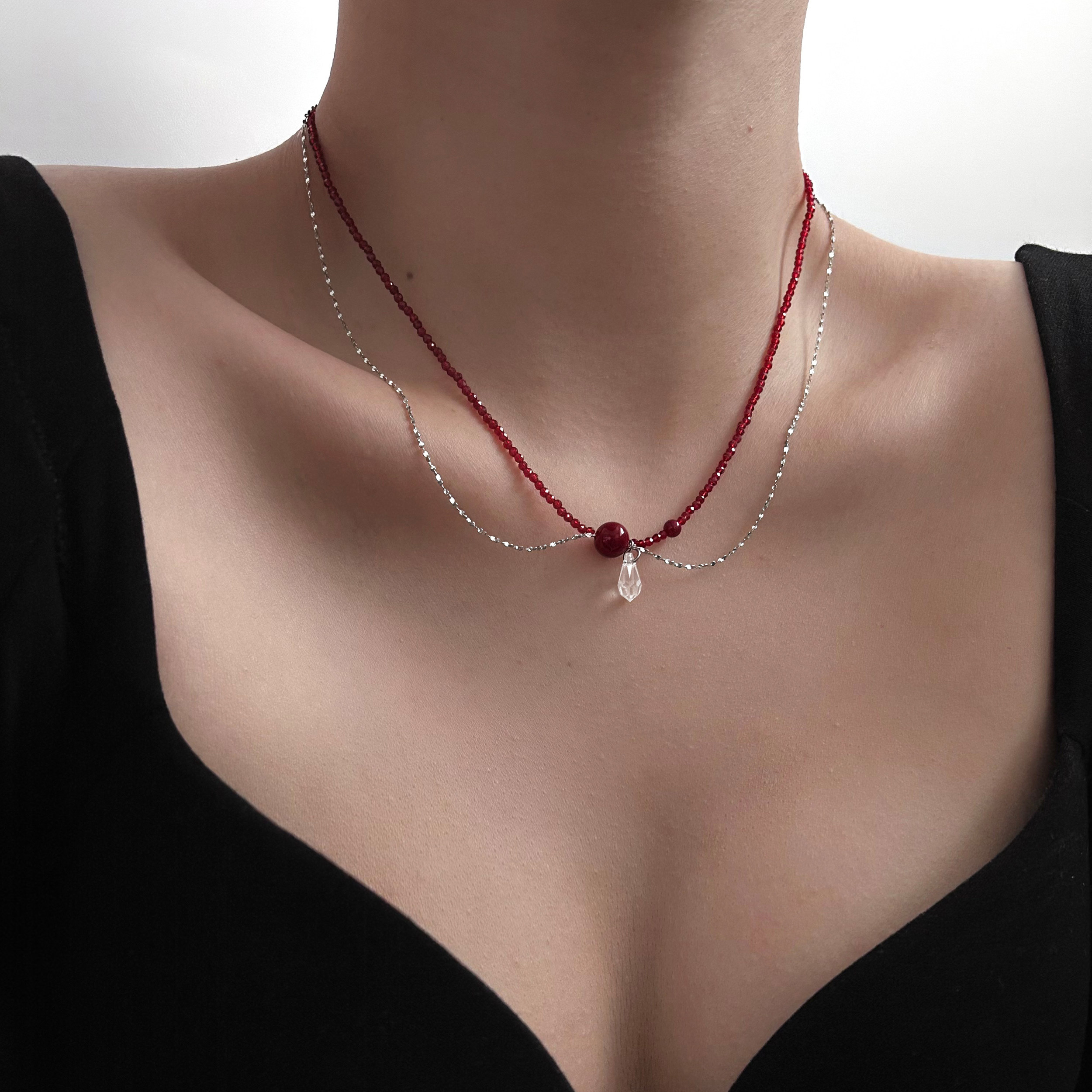 SU浮空岛「微醺波尔多」不掉色项链小众高级感choker红色锁骨链