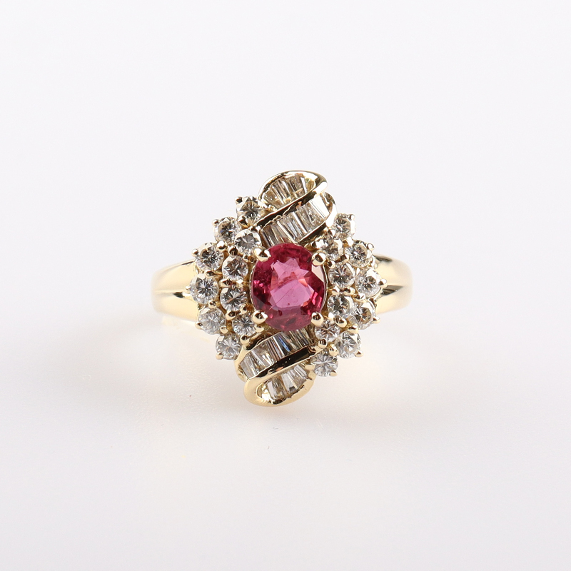【自营】中古95新日本进口商品椭圆形切工红宝石K18黄金57号戒指