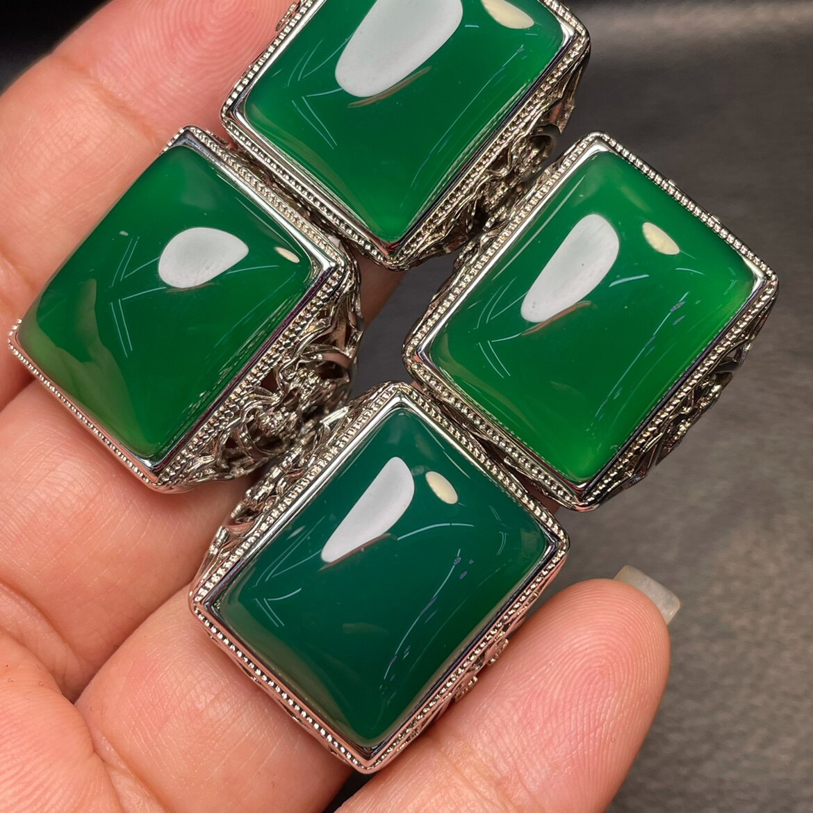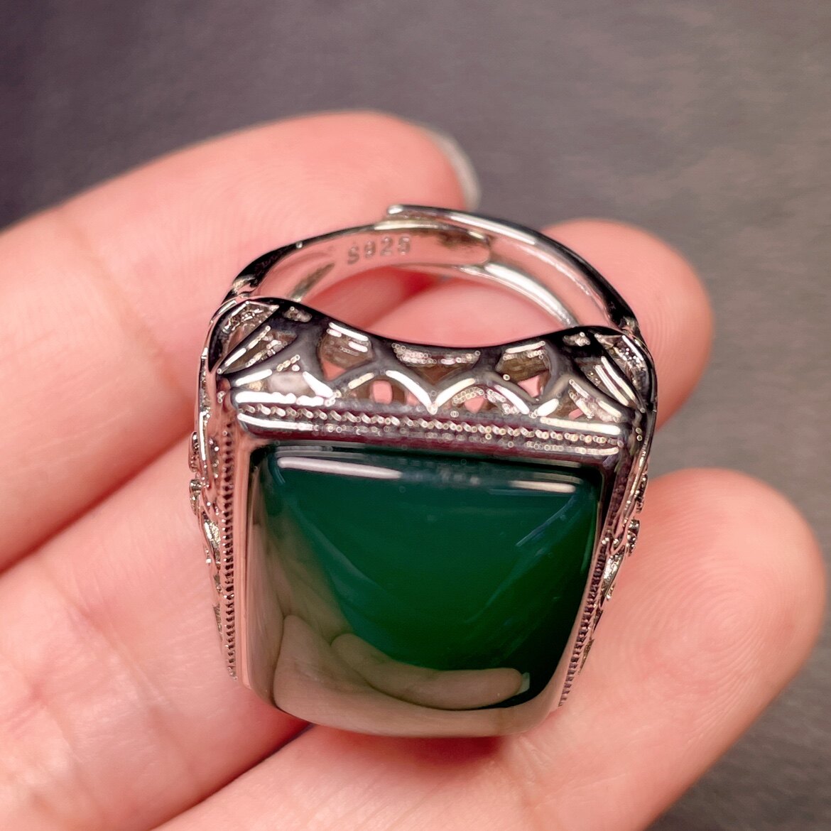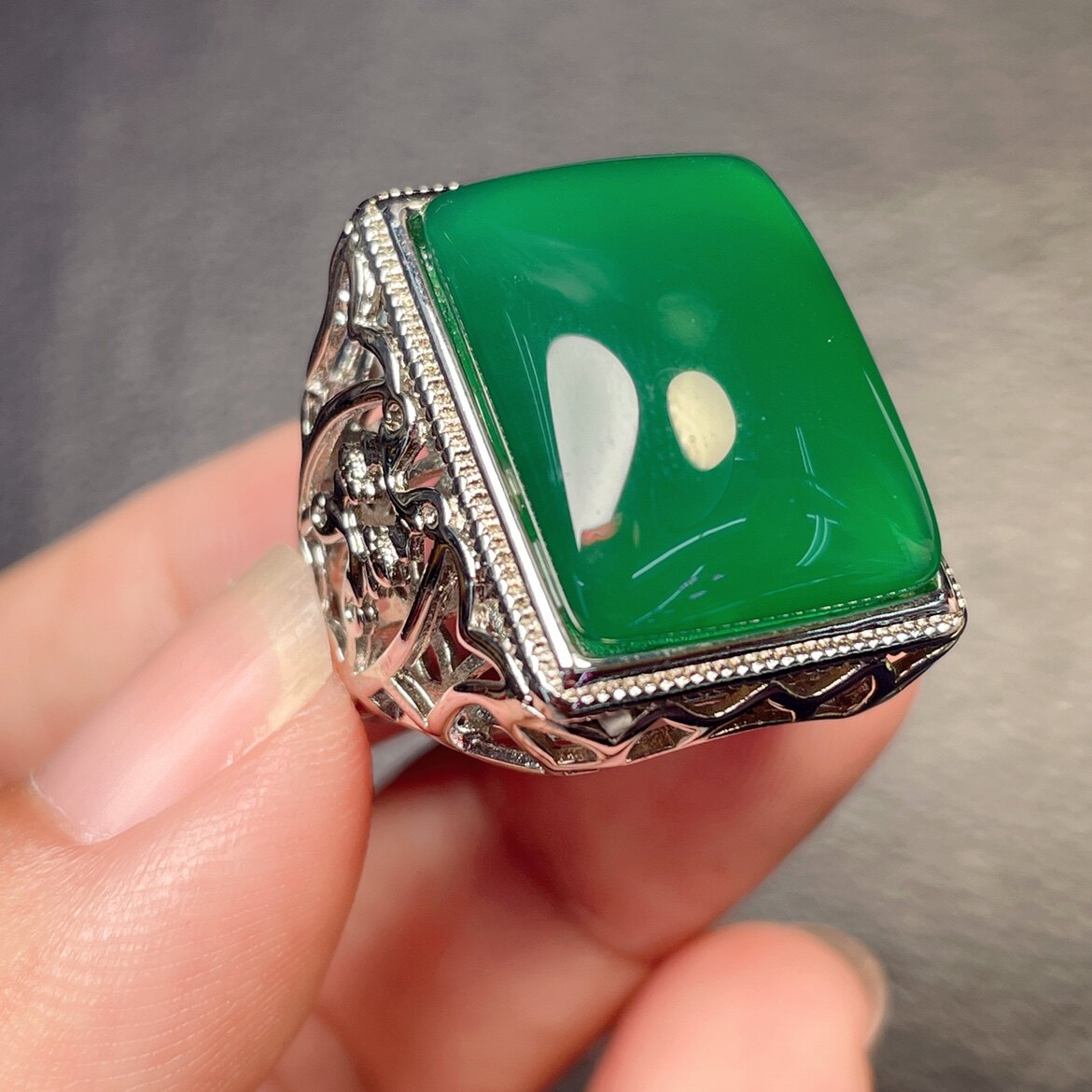 天然冰种绿玉髓戒指男士翡翠色宝石大方戒开口帝王绿玉石玛瑙指环