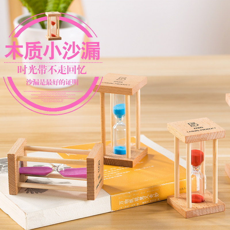 木质小沙漏计时器小孩刷牙防摔三分钟时间创意家居装饰品摆件礼物