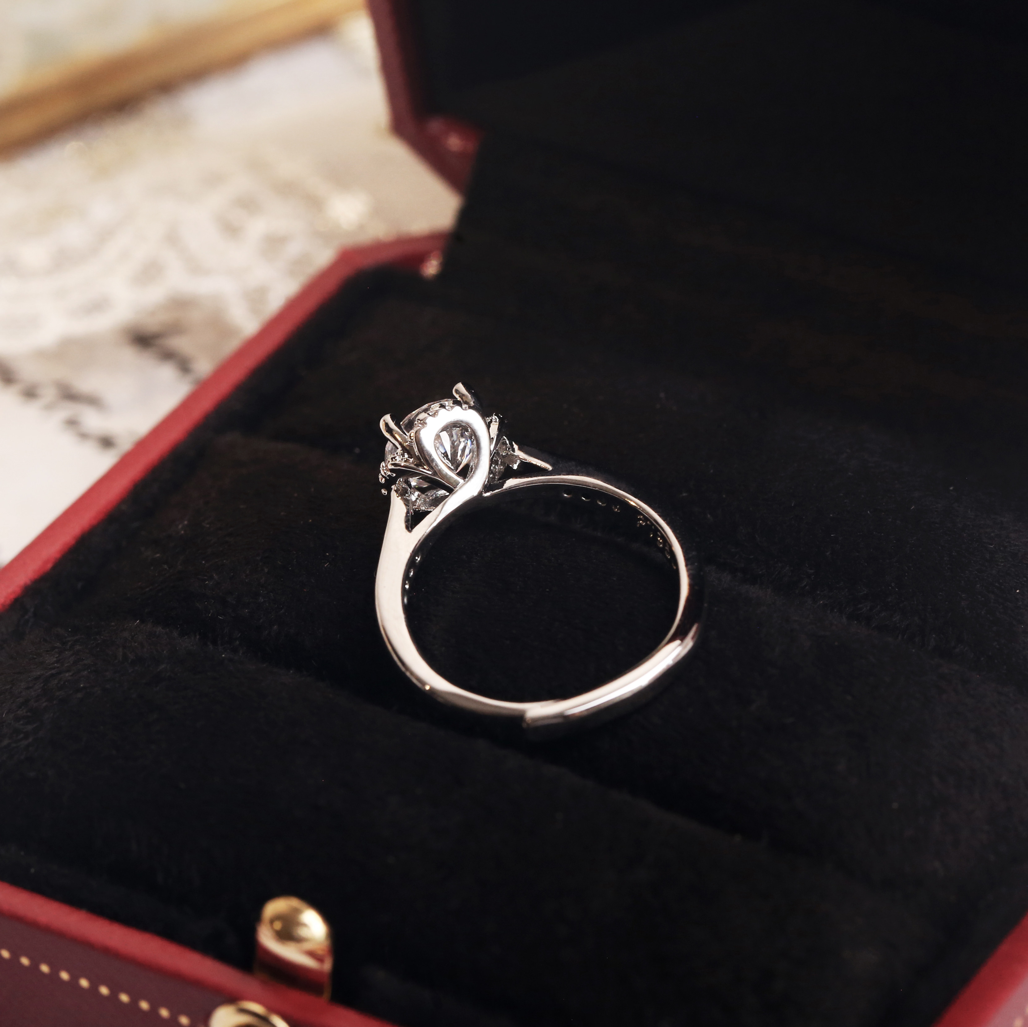1克拉花瓣四爪仿真锆石轻奢钻戒八心八箭群镶戒指结婚对戒道具
