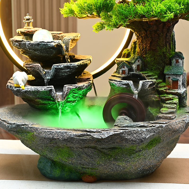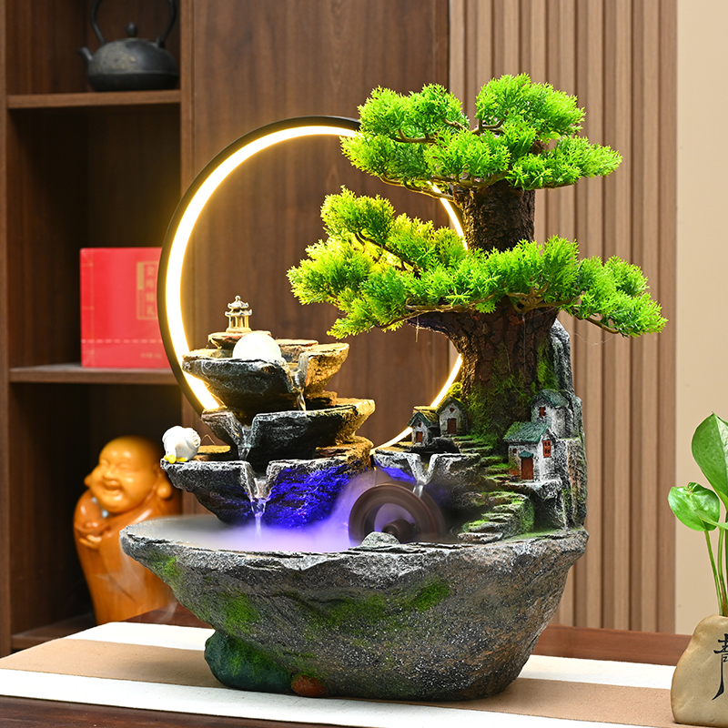 尊儒新中式假山流水摆件茶几装饰品喷泉风水轮工艺品客厅桌面装饰