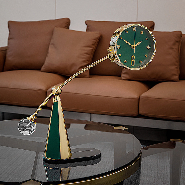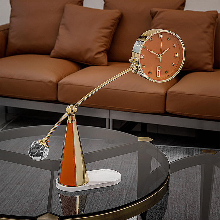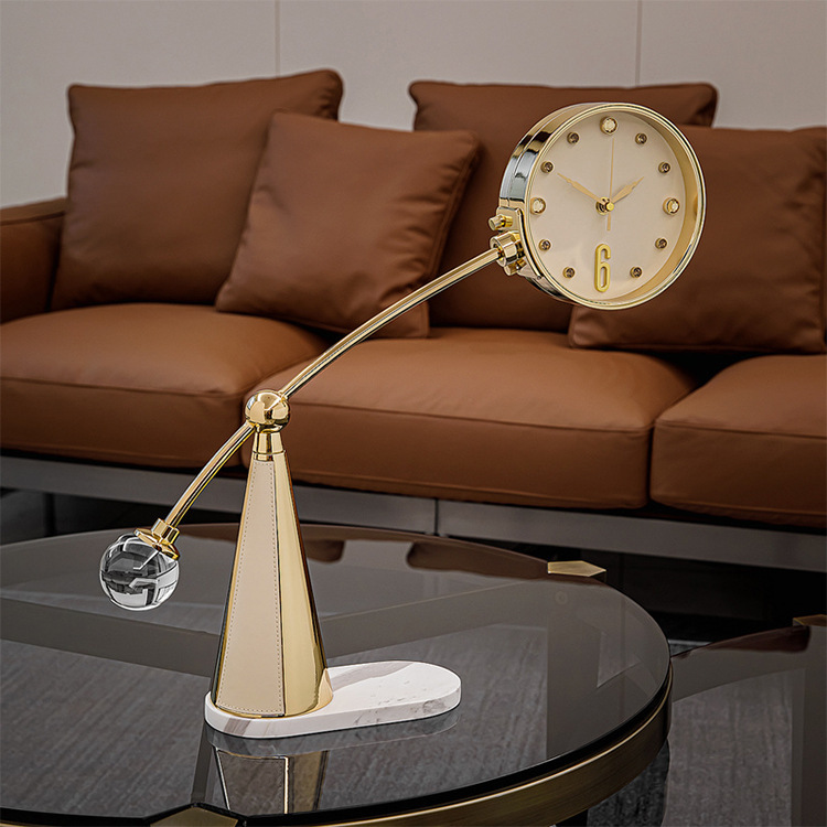 现代创意轻奢合金皮革座钟个性时尚钟表摆件客厅家用简约桌面台钟
