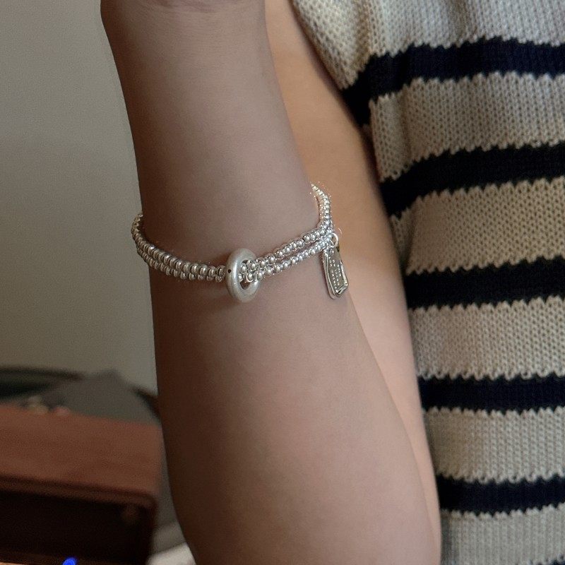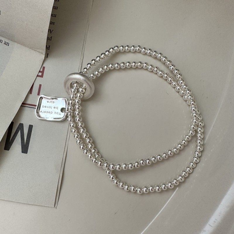 S925纯银韩版小众设计感弹力绳简约字母串珠手链韩式风时尚首饰品