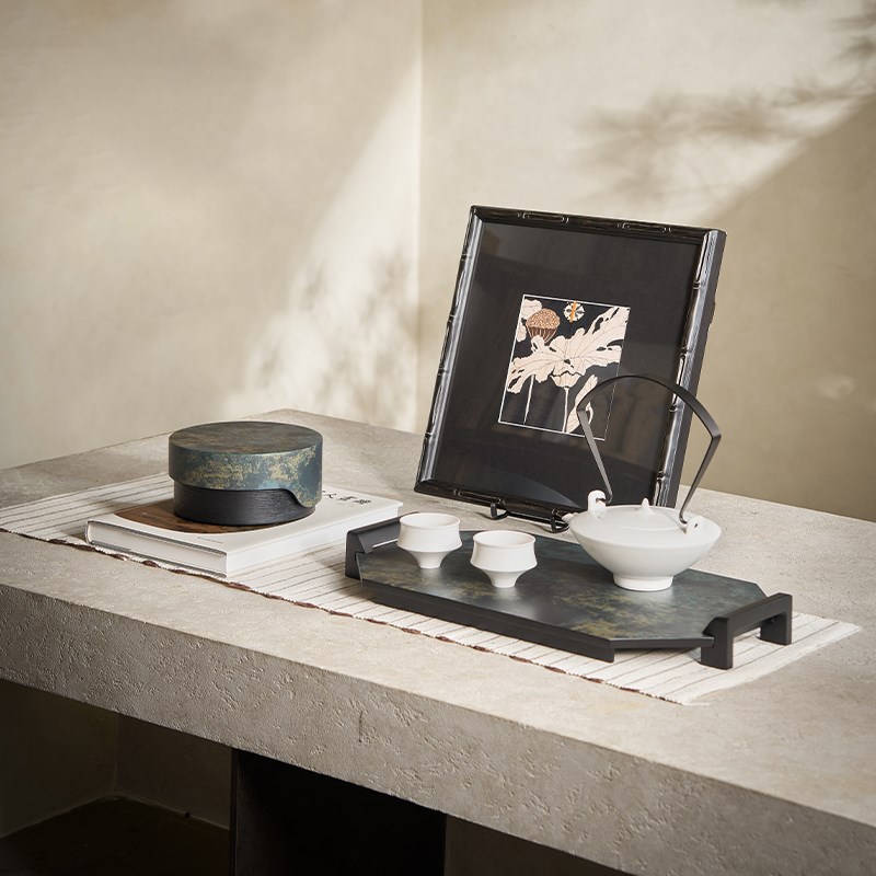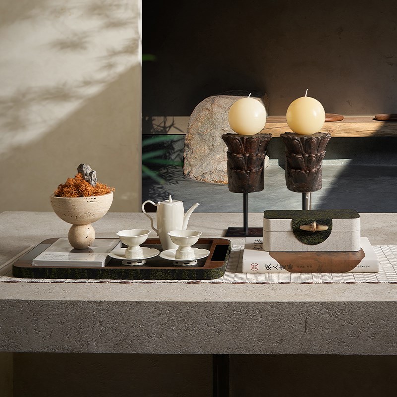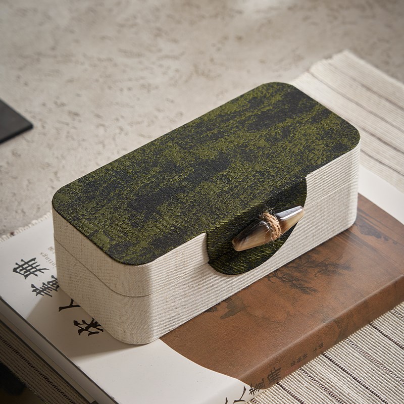 侘寂风绿色系列收纳装饰盒方形圆形民宿J桌面干果收纳柜体装饰摆