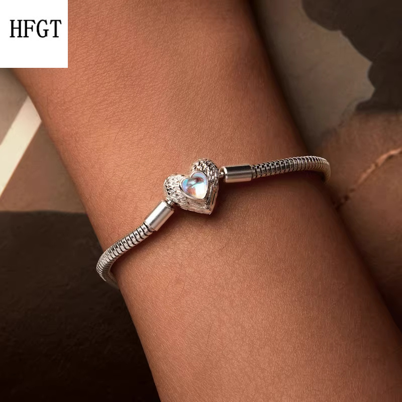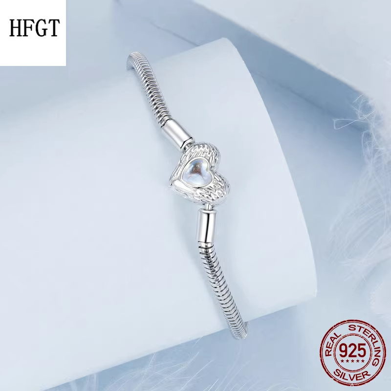 原创s925纯银珠子天使的翅膀串珠简约爱心基础链心形diy手链配件
