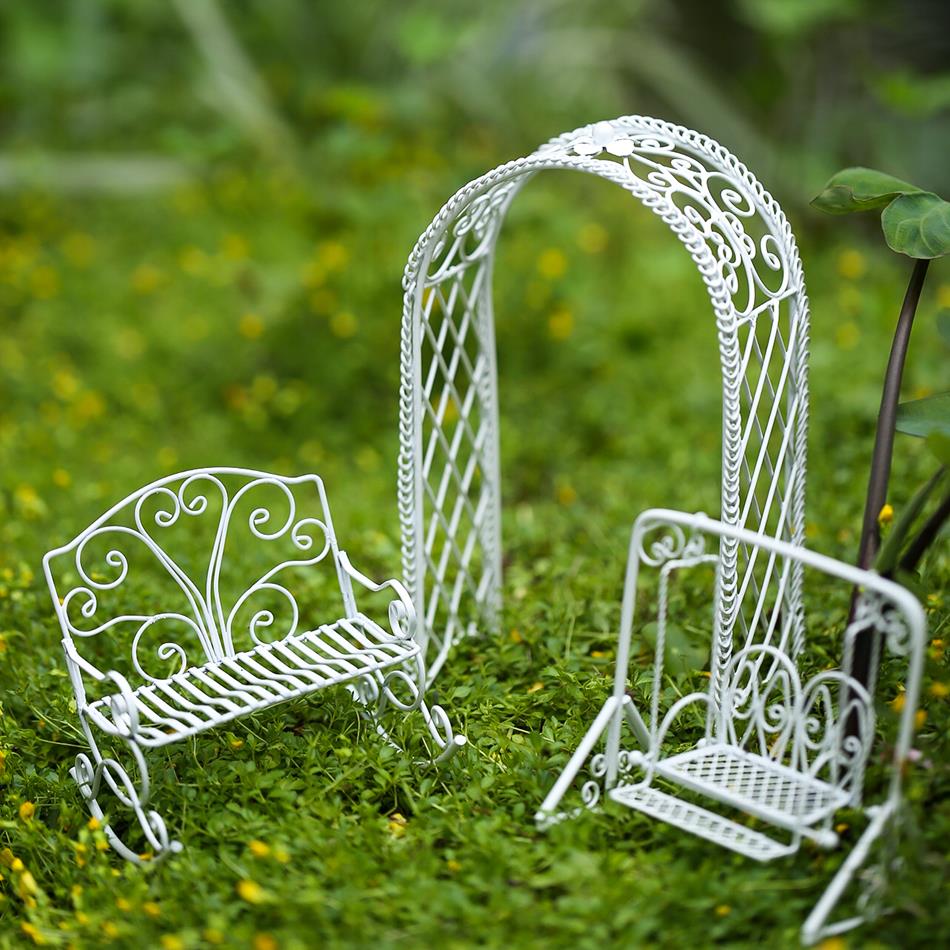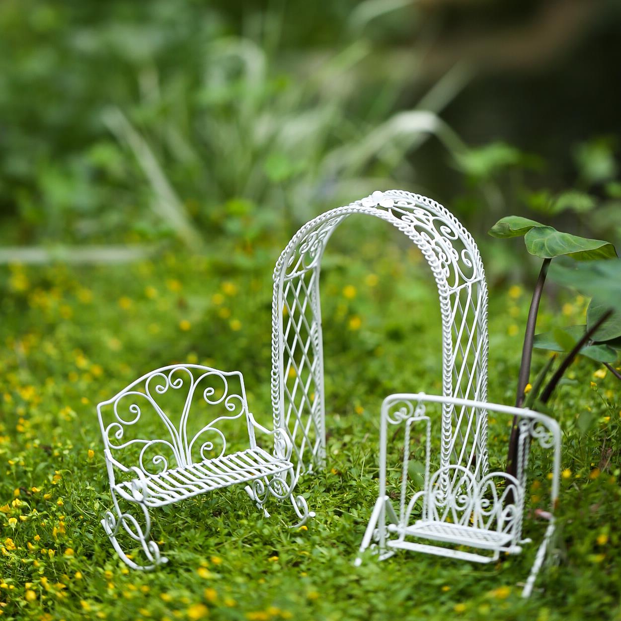 多肉微景观 园艺装饰纯手工小摆件娃屋家俱铁艺 迷你拱门秋千摇椅