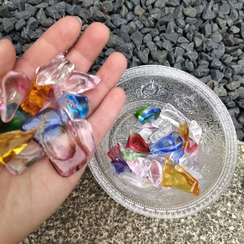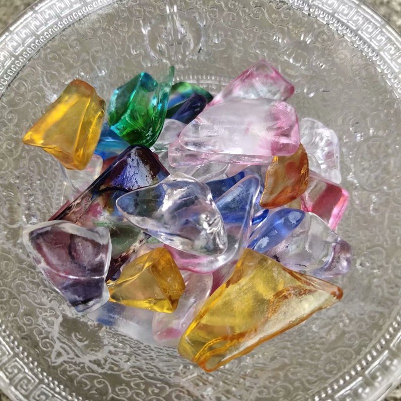 速发宝晶琉工碎石彩色假山盆景聚水盆鱼缸装饰纯手璃打磨供佛装藏