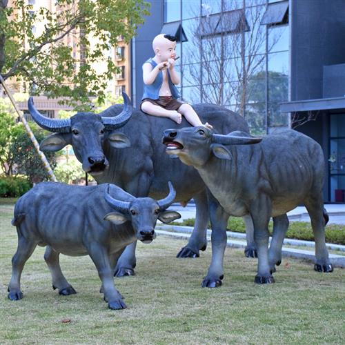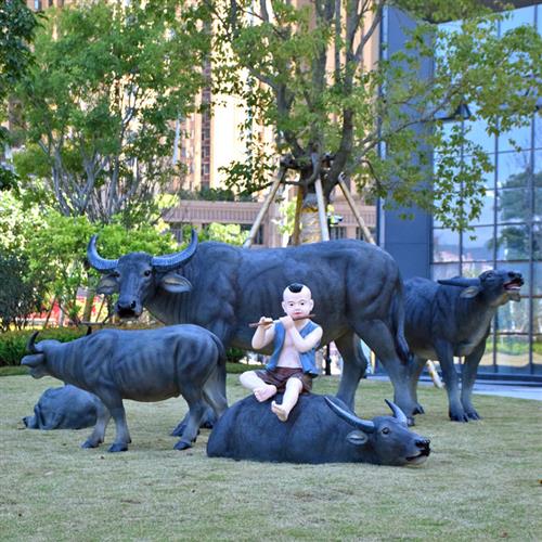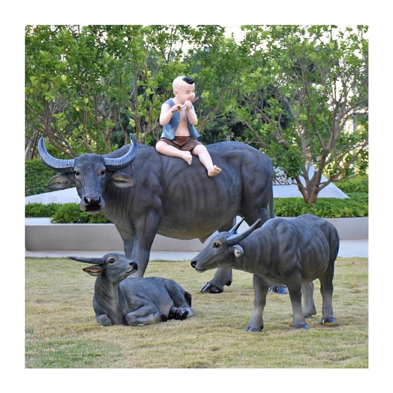 园林牧童骑仿真水牛雕塑农耕模型摆件大型动物玻璃钢户外景观装饰