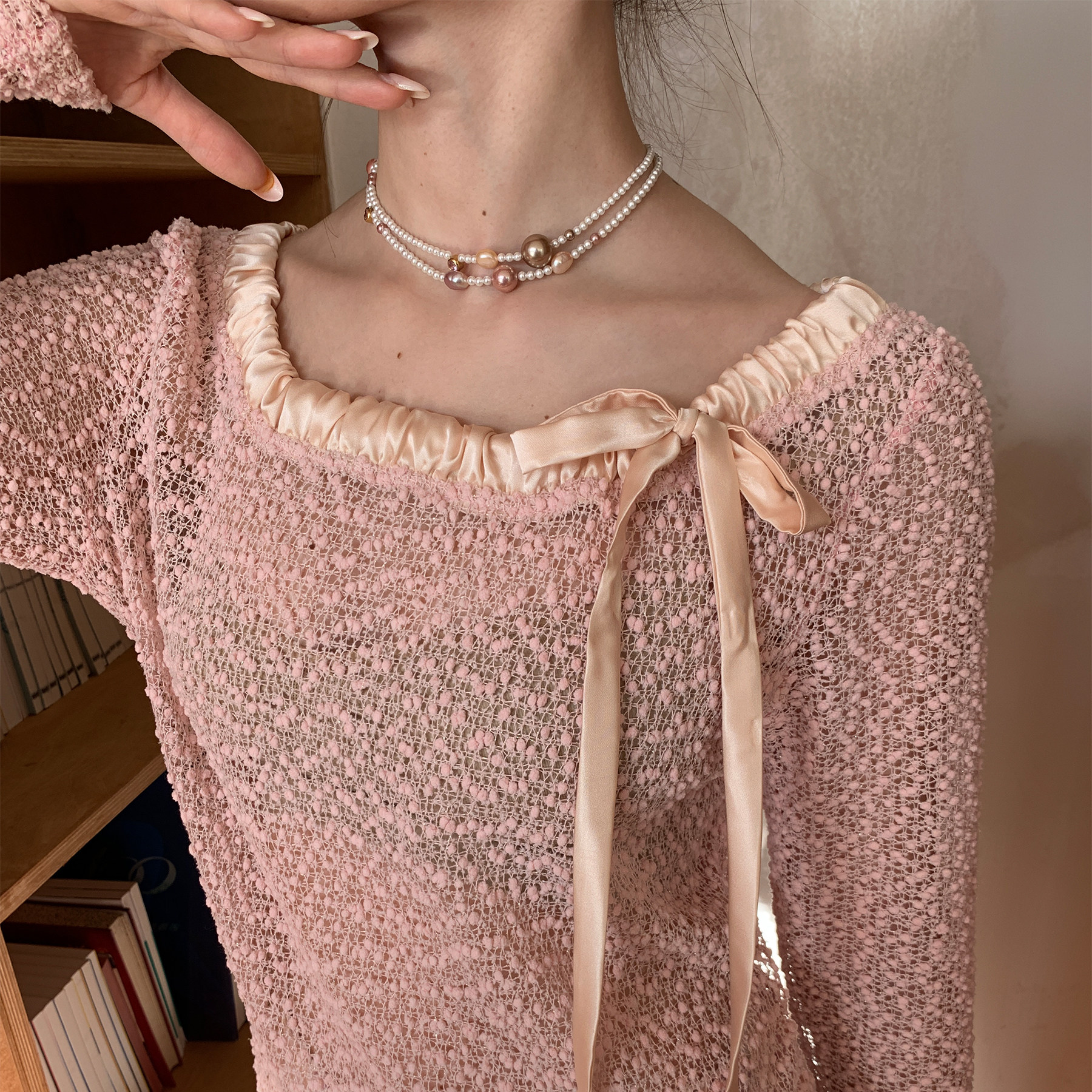 花筏NOTJUSTHIM《米兰玫瑰》香槟粉色巴洛克天然珍珠双层项链