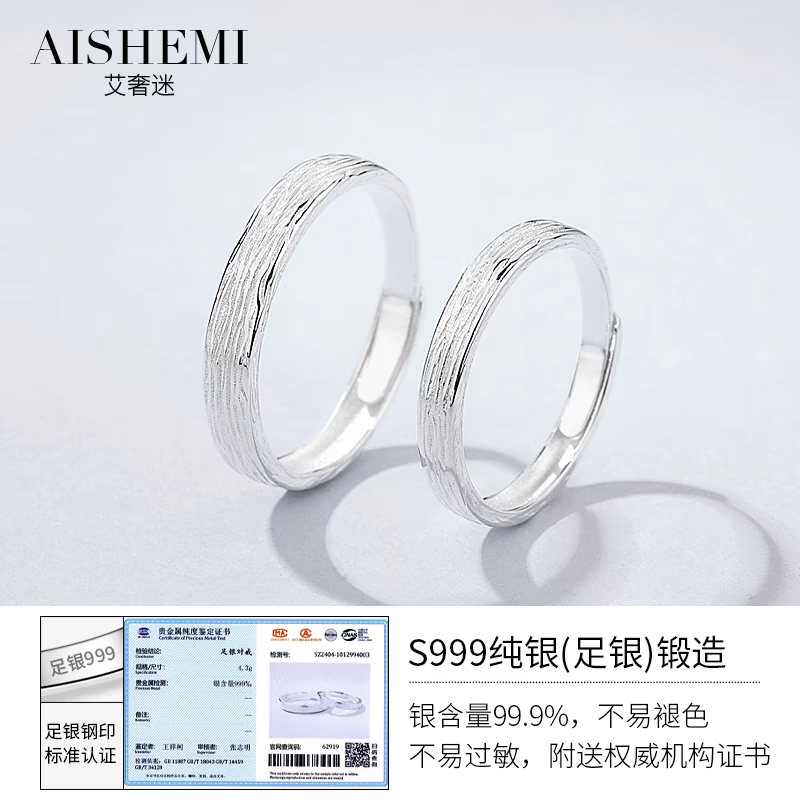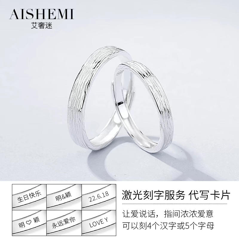 999纯银一对情侣戒指足银简约对戒轻奢高级感素圈送女友定制刻字