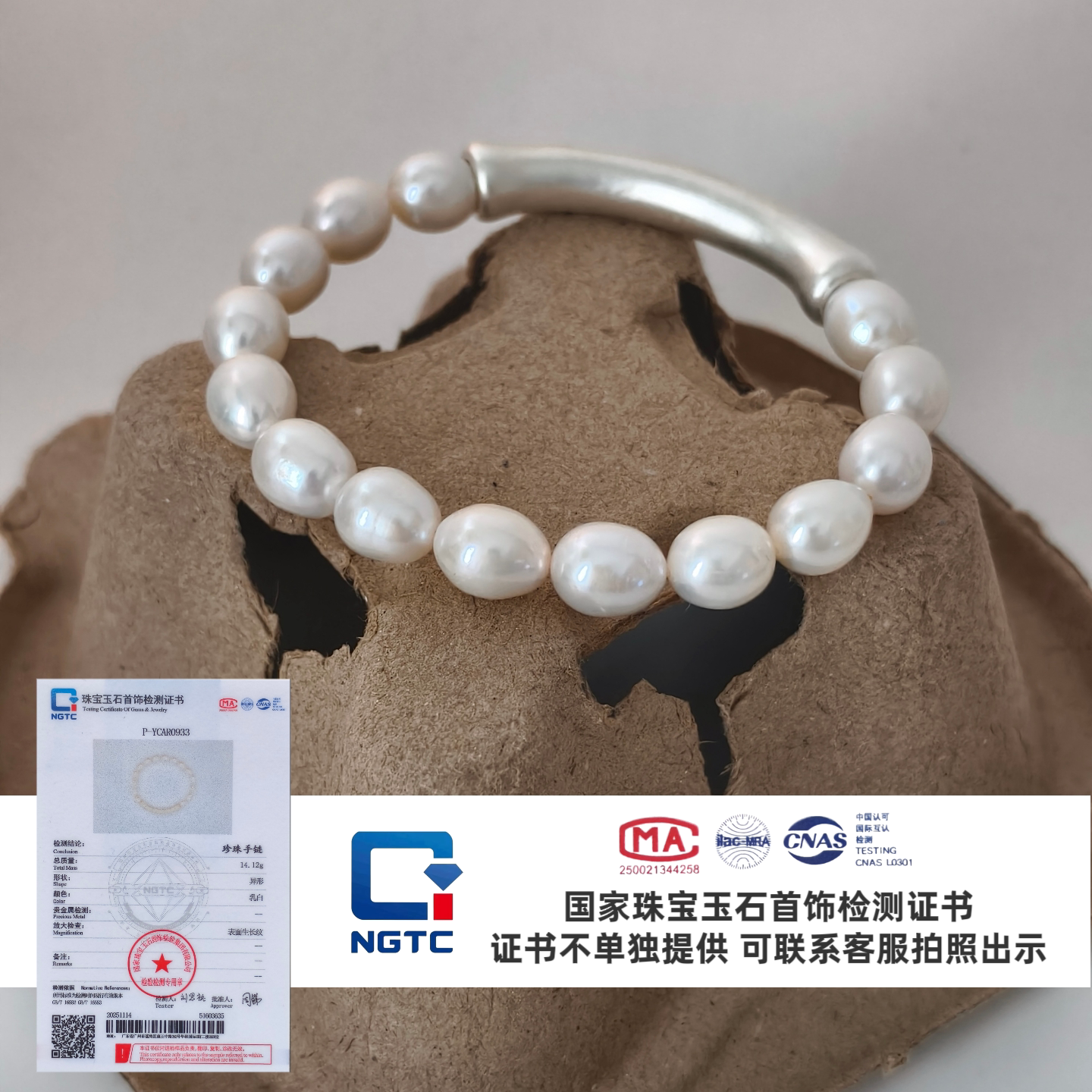 S999足银天然珍珠手链强光淡水珍珠足银手链珍珠银手镯女生礼物