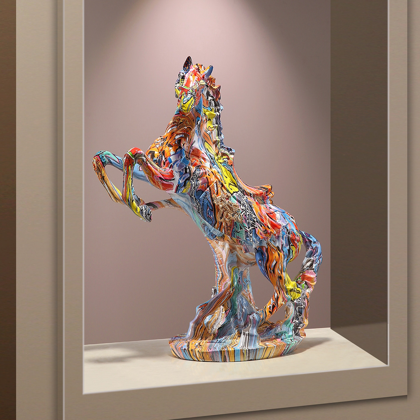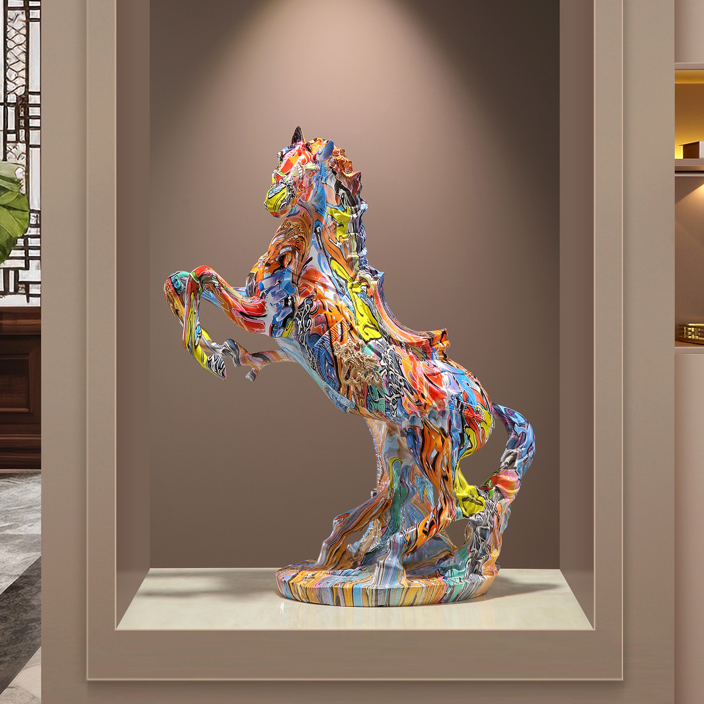 彩色马摆件大型落地竖高档装饰客厅玄关电视柜旁公司店铺装饰礼品