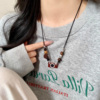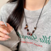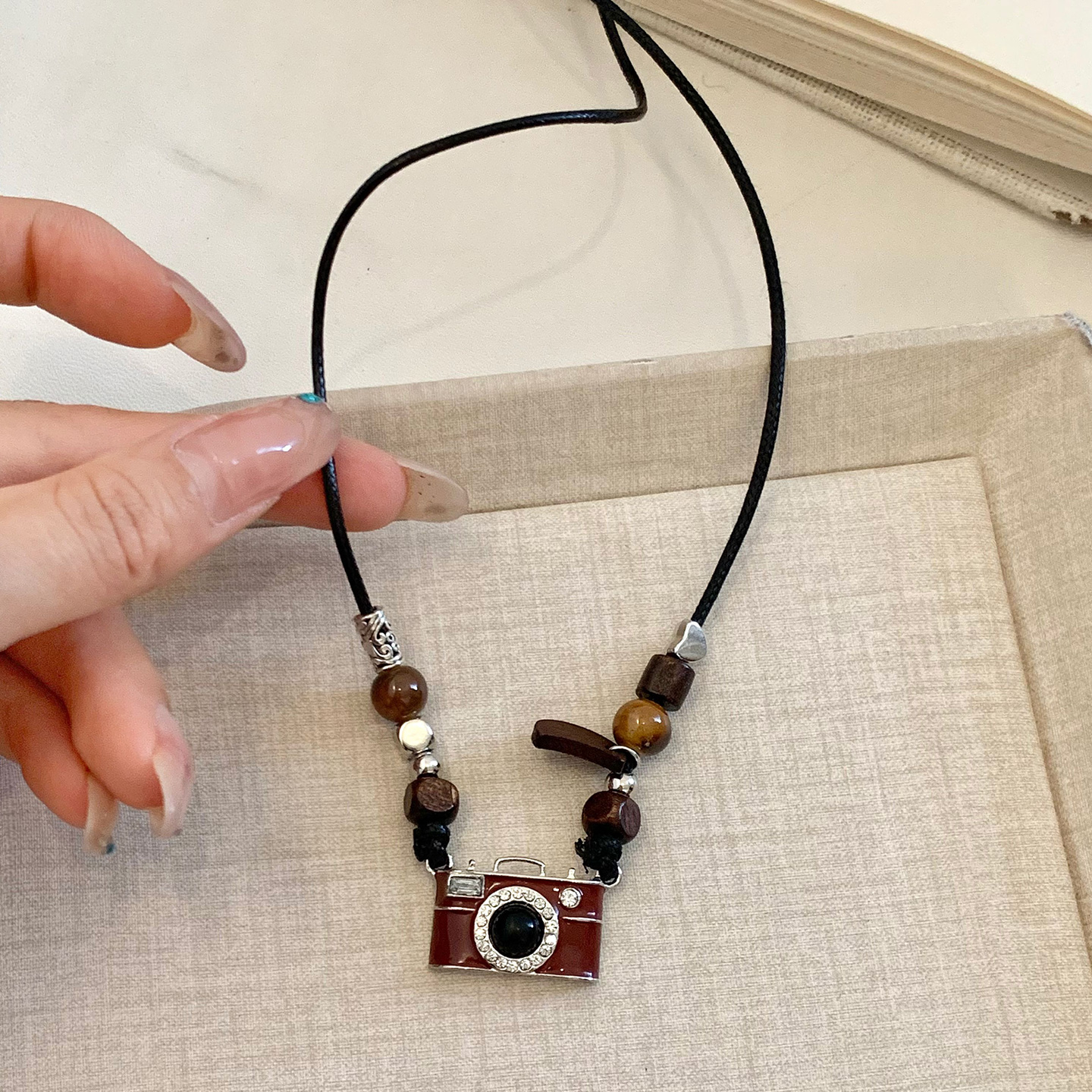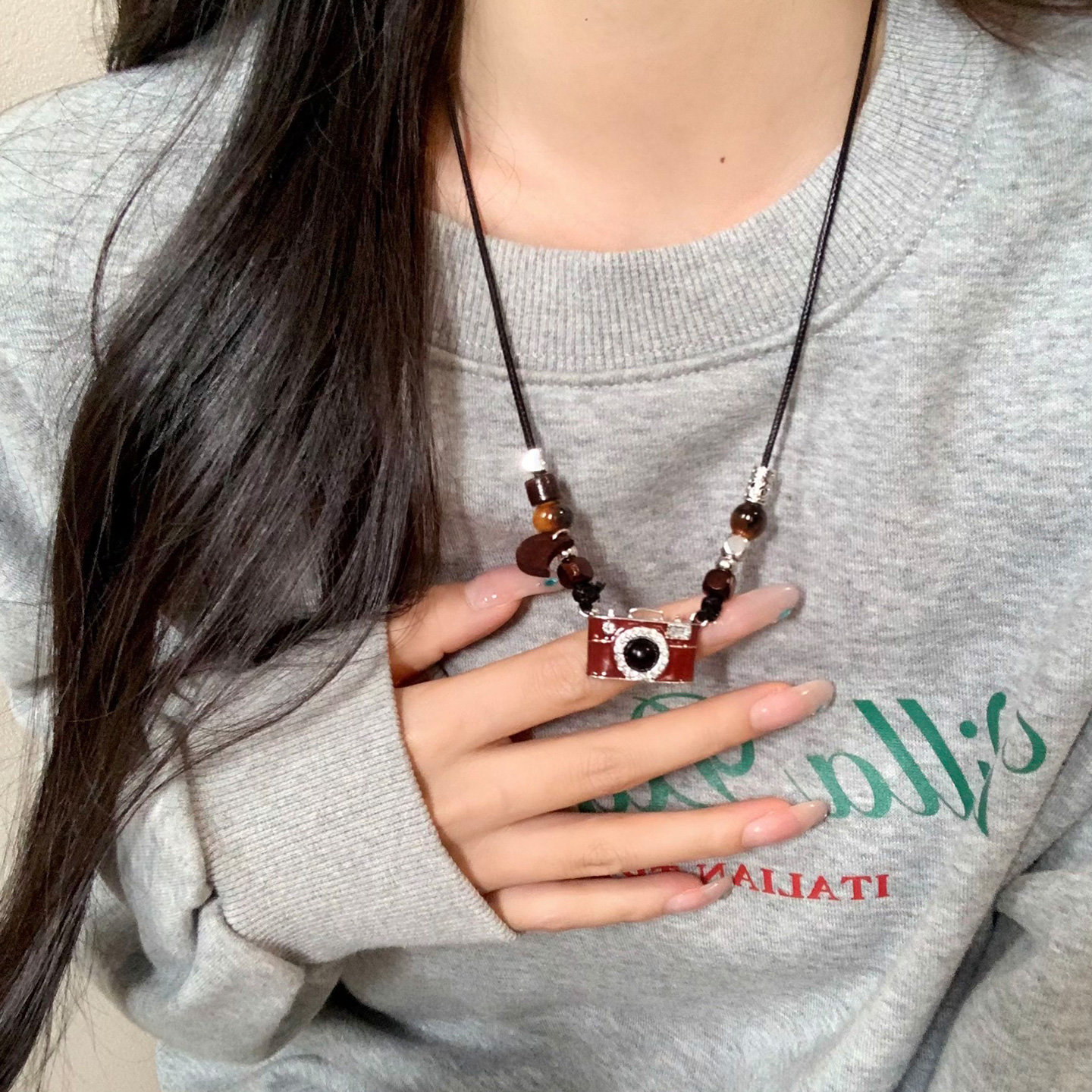 棕色相机项链女2025新款长款流苏皮绳毛衣链小众设计感卫衣链配饰