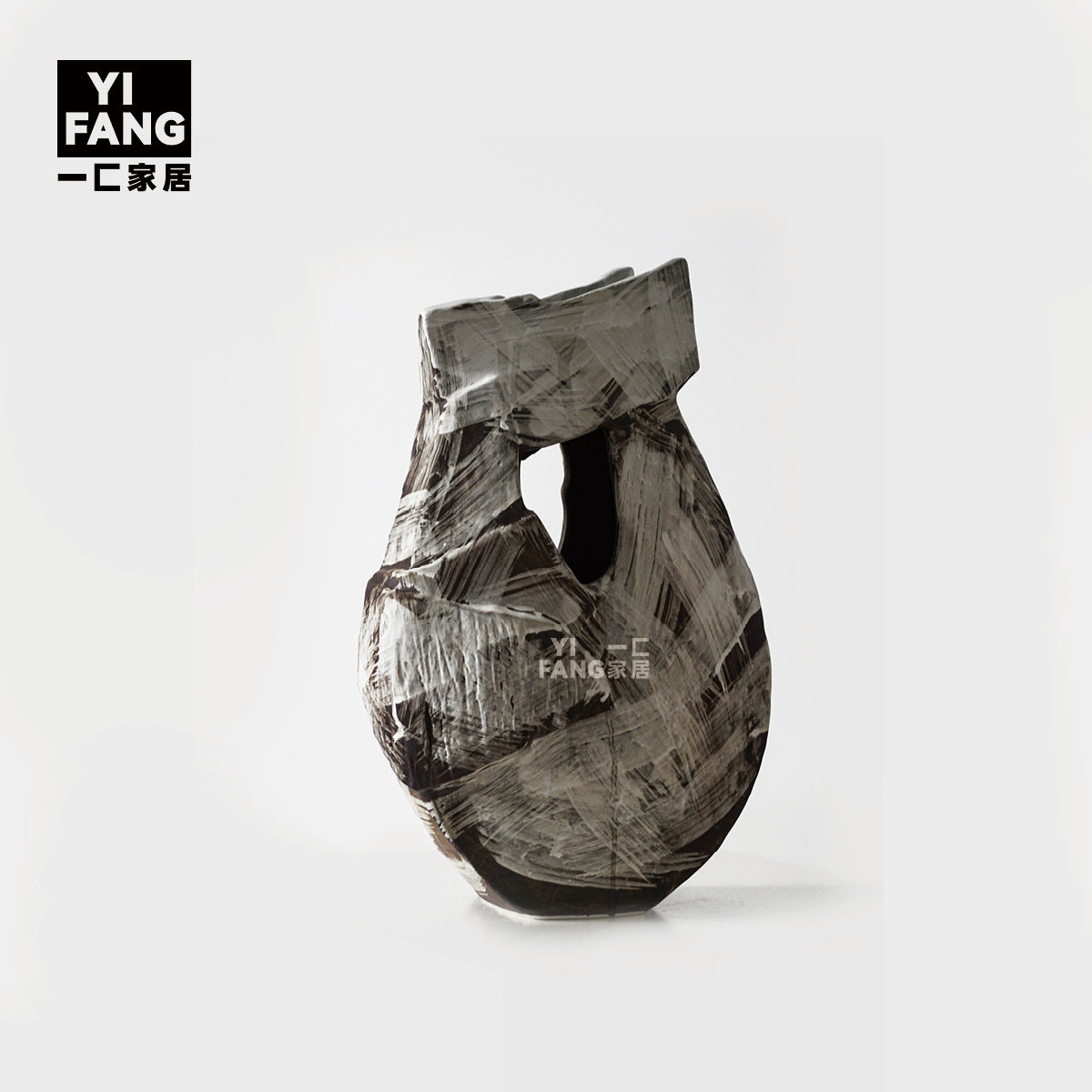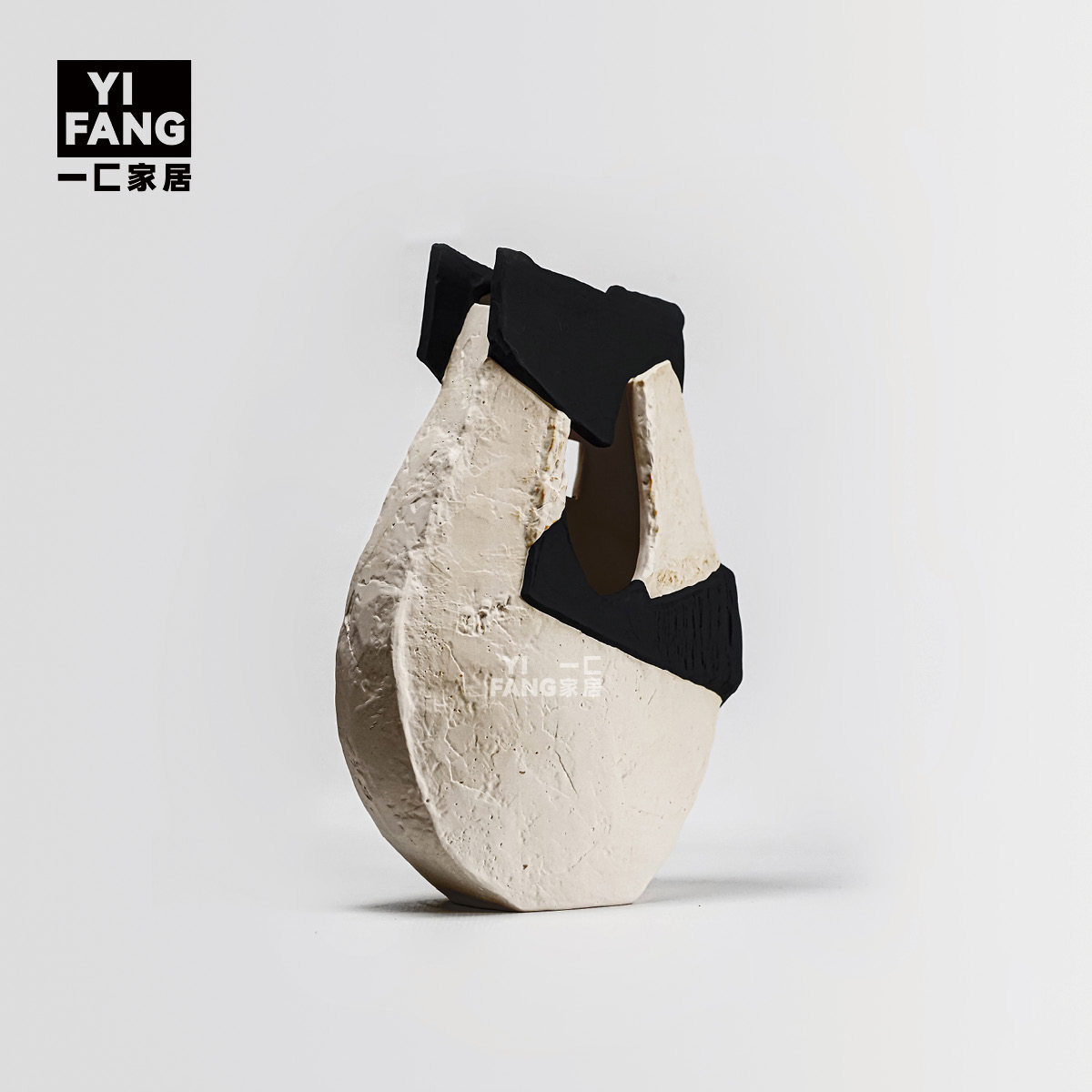一匚 现代创意艺术黑色拼色陶瓷花器 样板间售楼处客厅展厅摆件