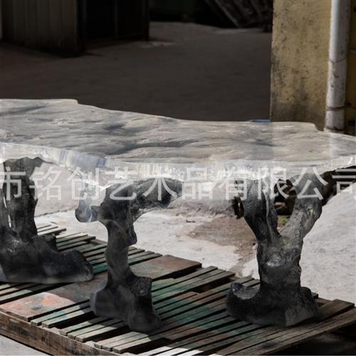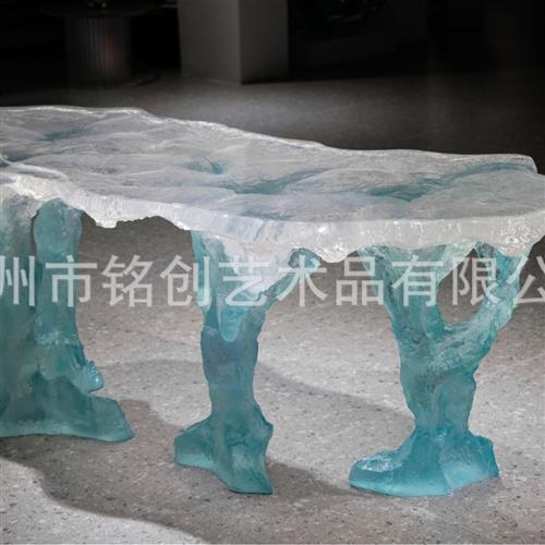 铂晶透明树脂冰岛水晶茶桌现代异形套装桌椅