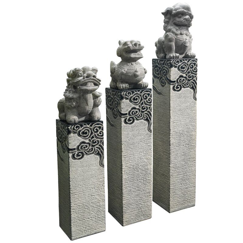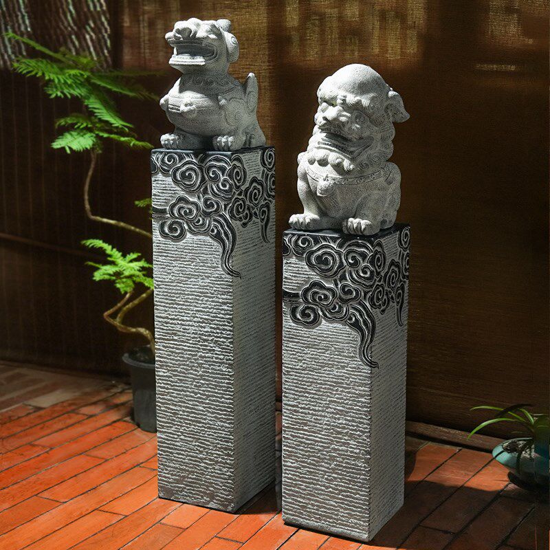 麒麟狮子貔貅门口拴马柱落地装饰摆件中式仿古庭院茶室内仿石摆设