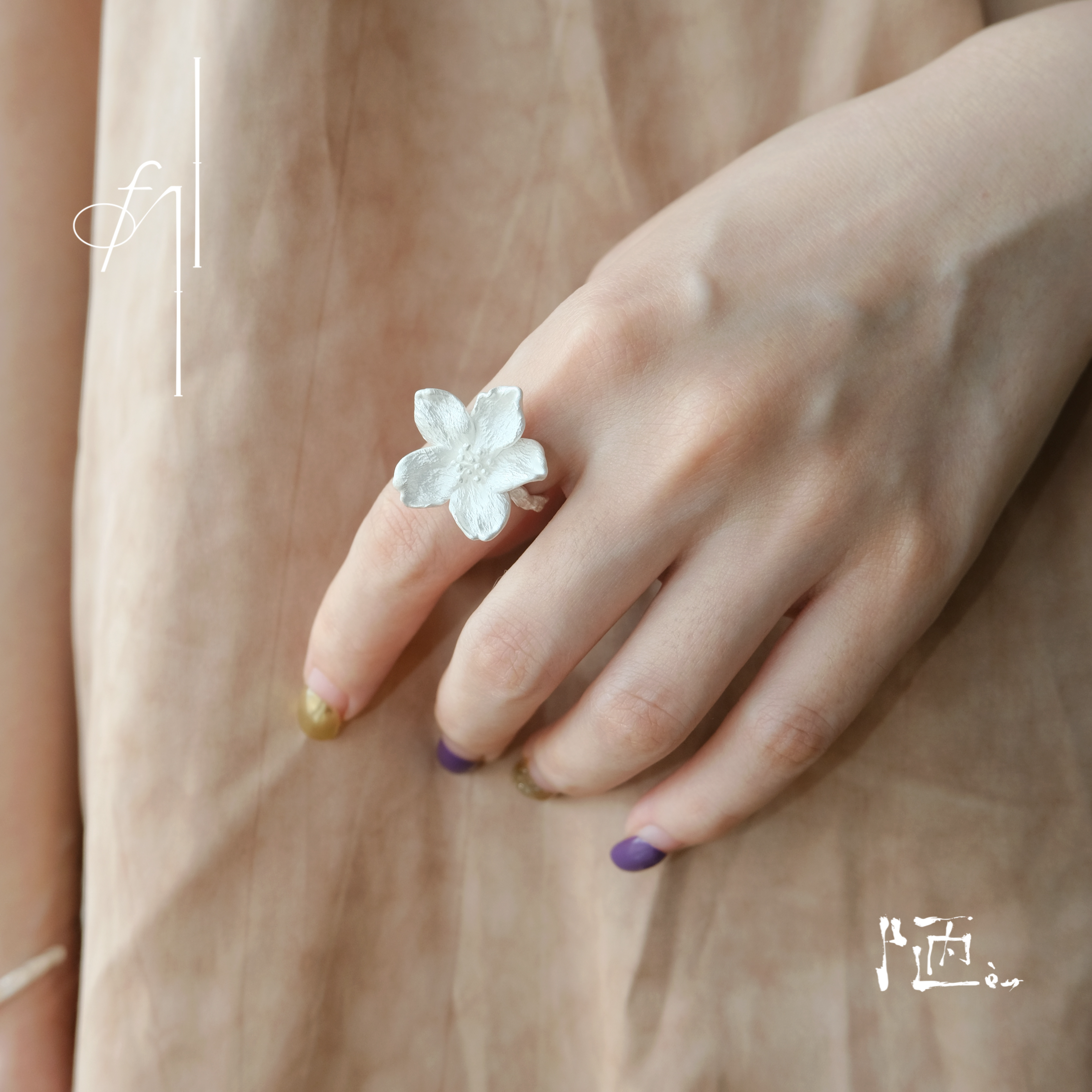 陋Lou 一朵樱花戒指 原创设计925银戒指开口 花朵造型仙气