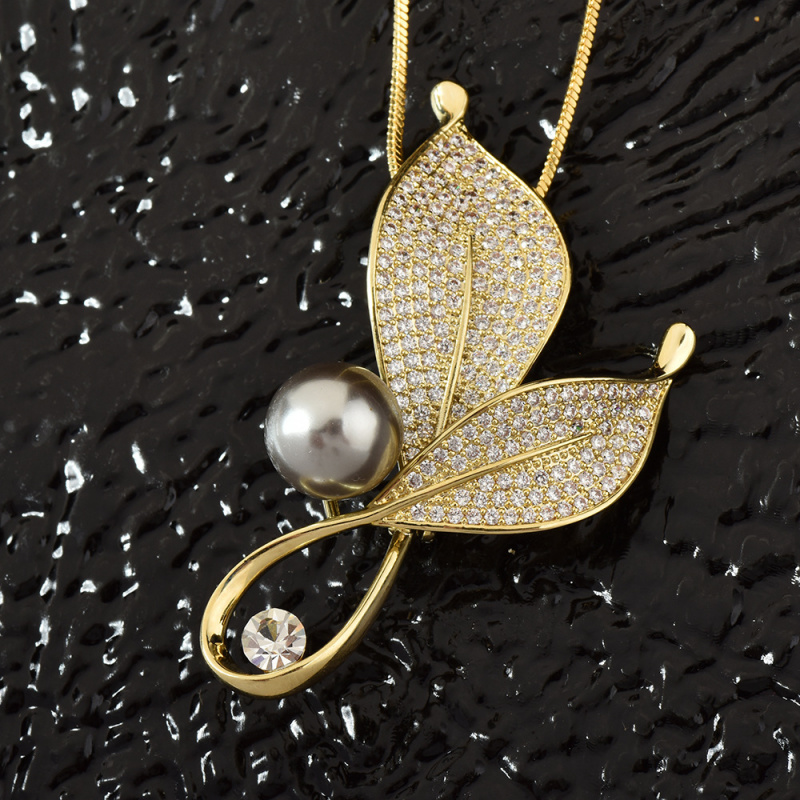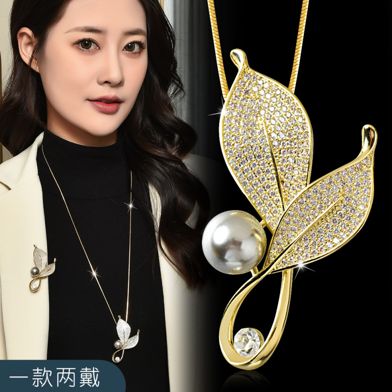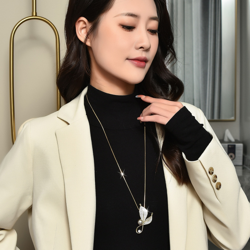 秋冬高级感毛衣链叶子珍珠吊坠长款项链女气质时尚百搭衣