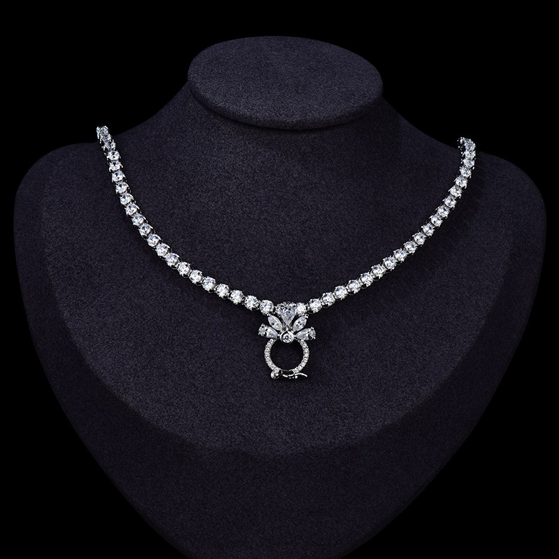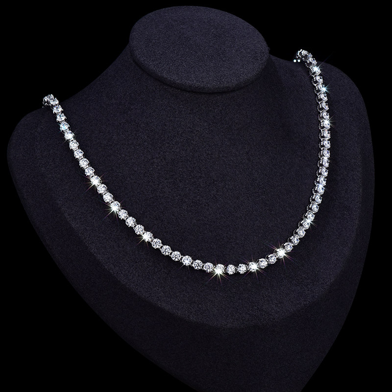 卓蝶珠宝925纯银镀白金满钻项链宴会款奢华仿钻石锁骨链两用款
