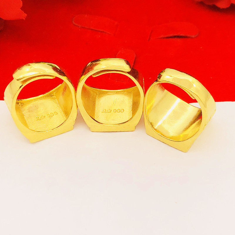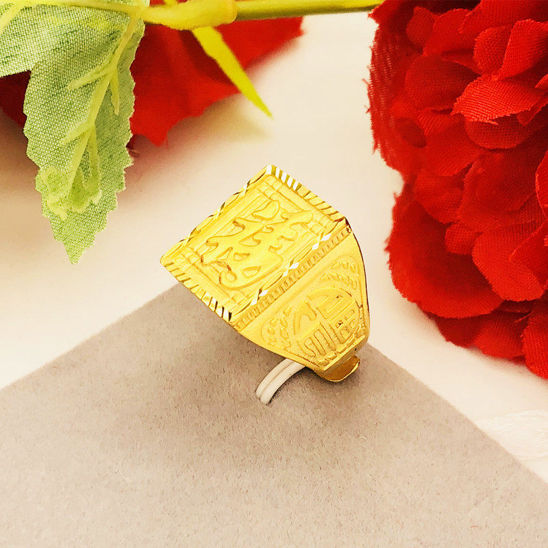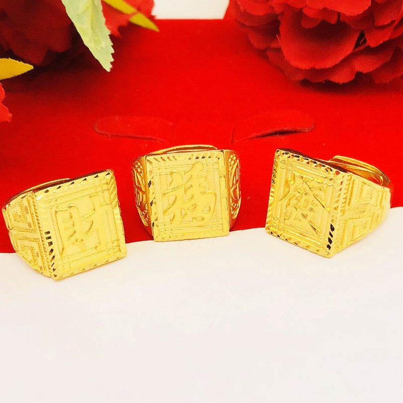 潮男沙金福发财字戒指黄铜硬币打造镀厚金假黄金钢印戒指久不掉色