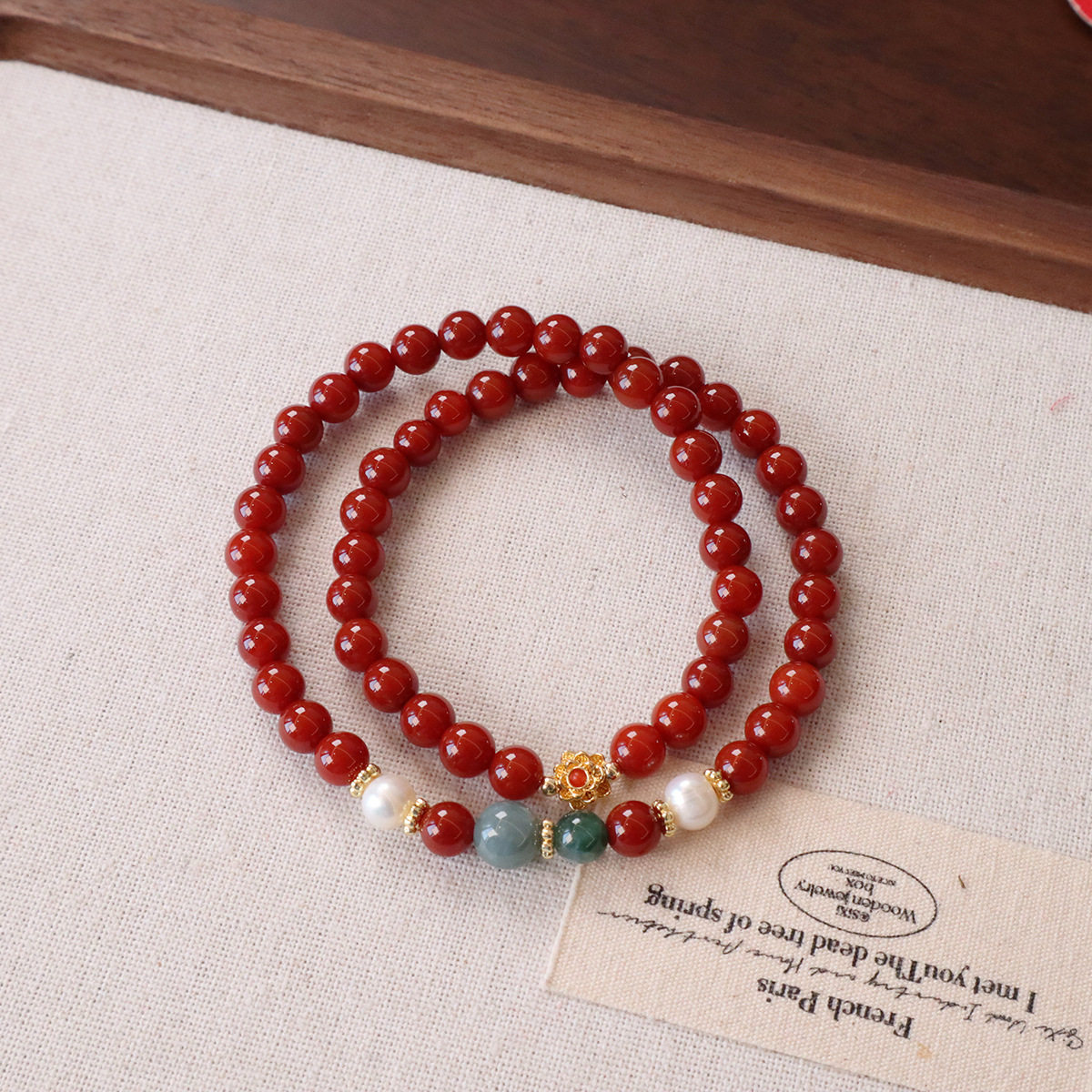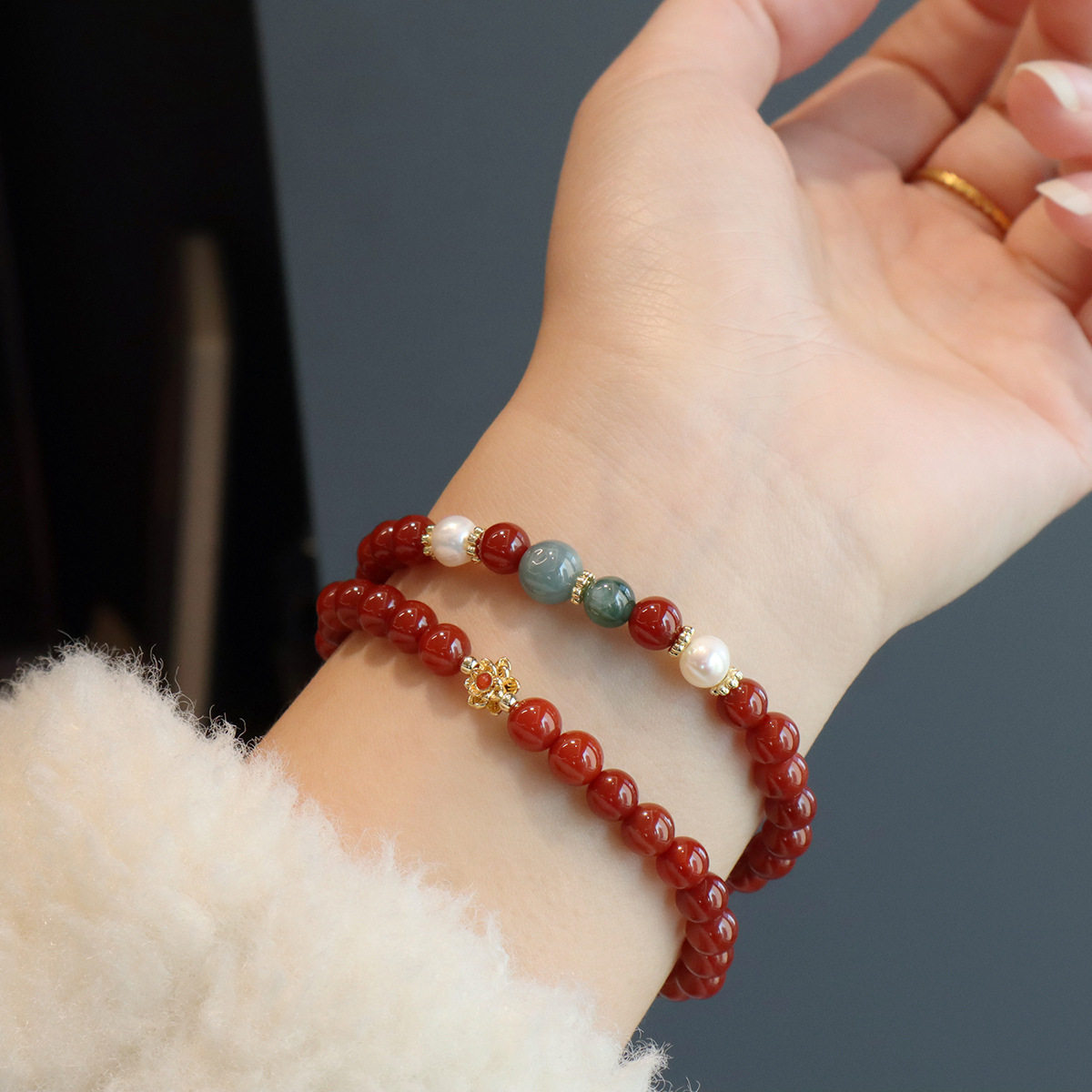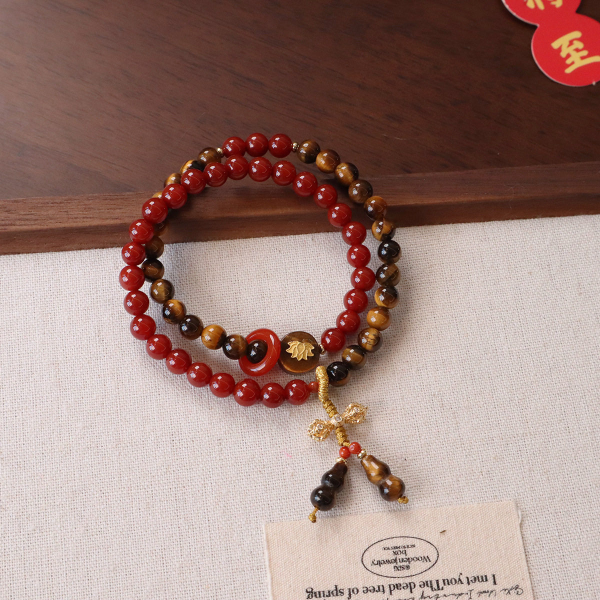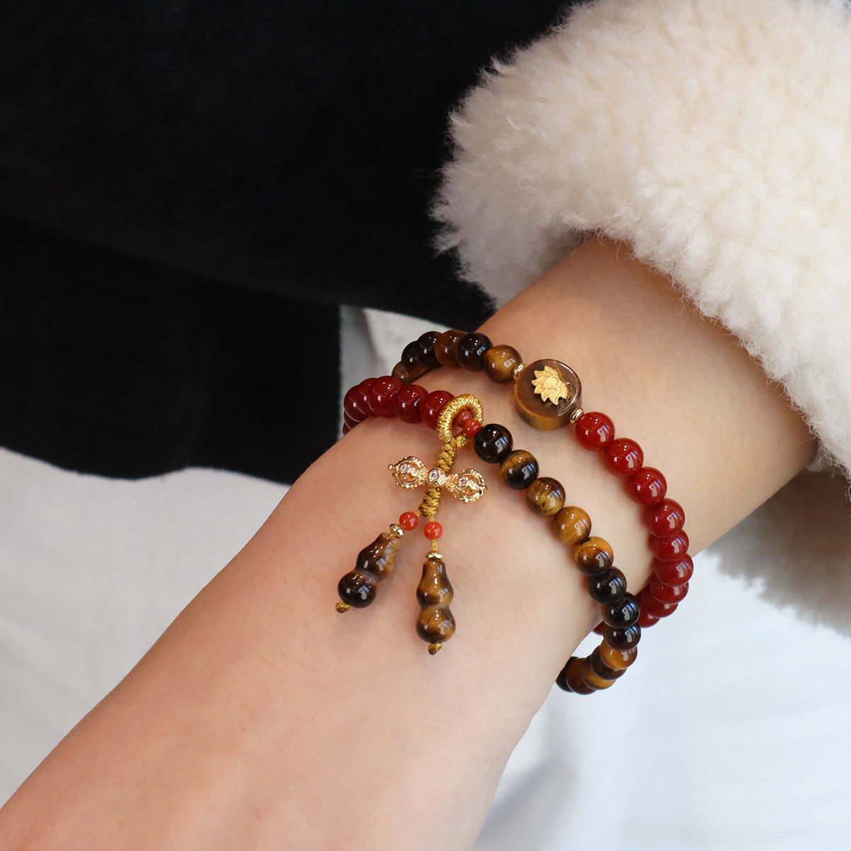 新款天然南红玛瑙手串虎眼石蓝水翡翠手链女生轻奢高级感双圈手饰