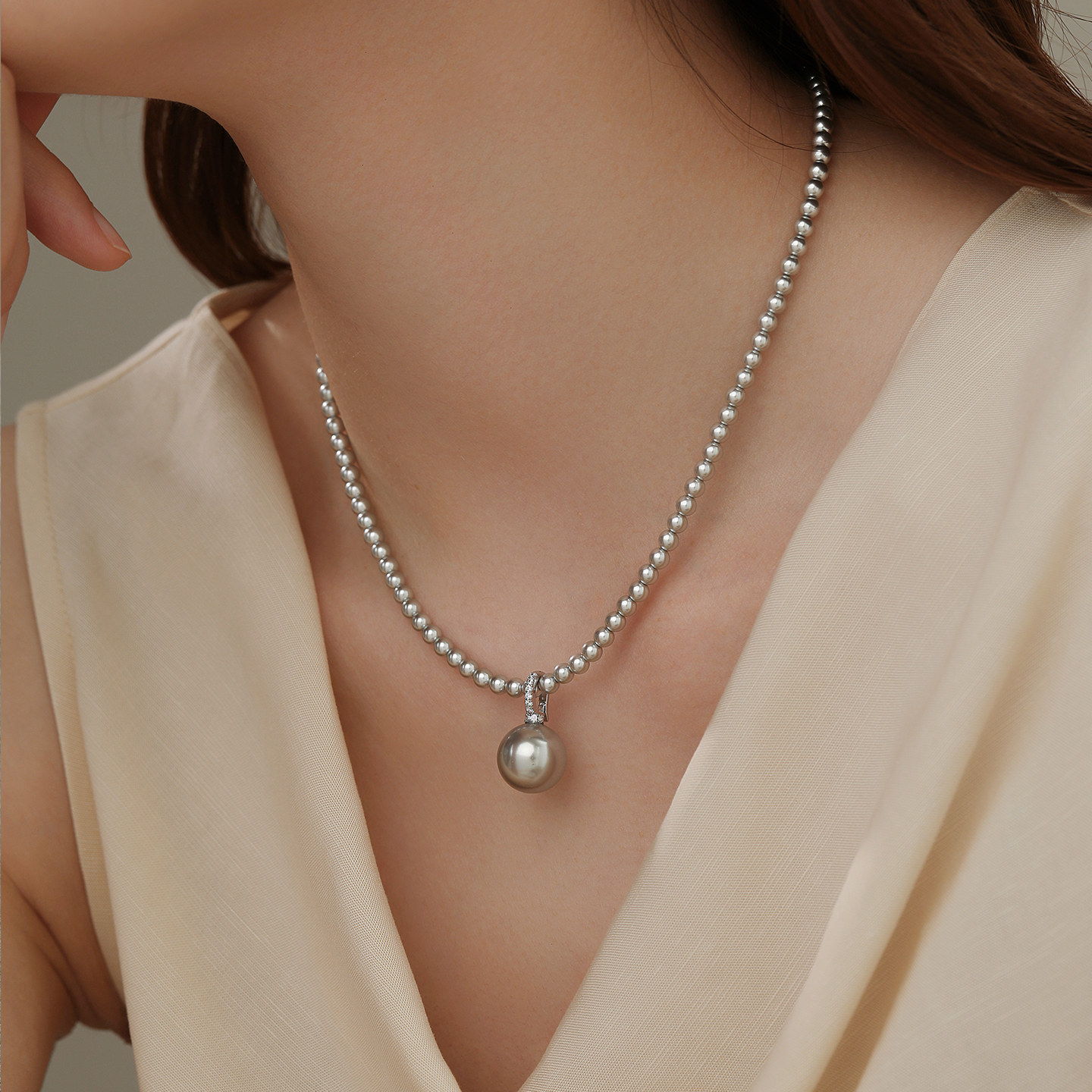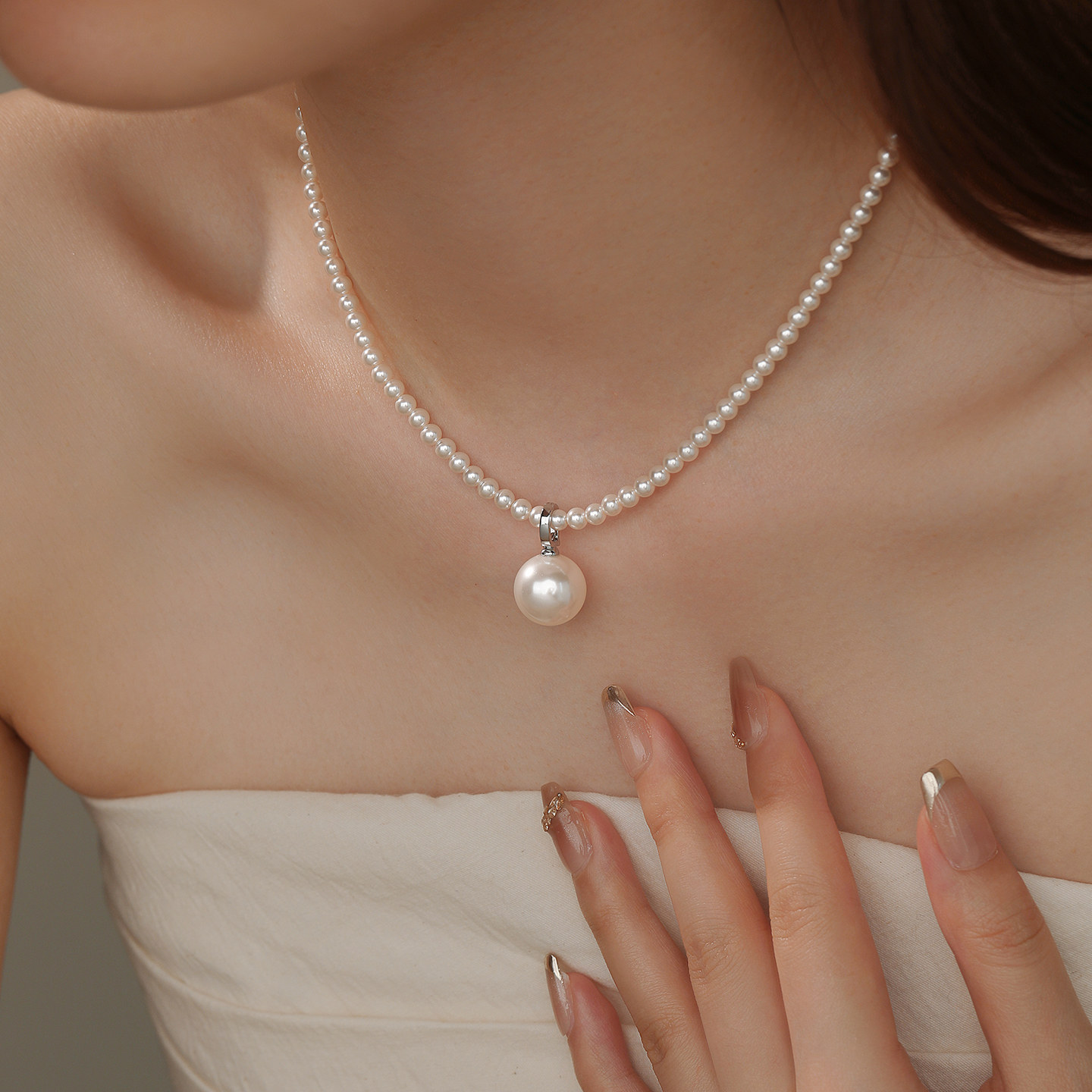 DIY镶钻单颗珍珠可拆卸吊坠百搭扣吊坠单坠搭配小米珍珠项链配件