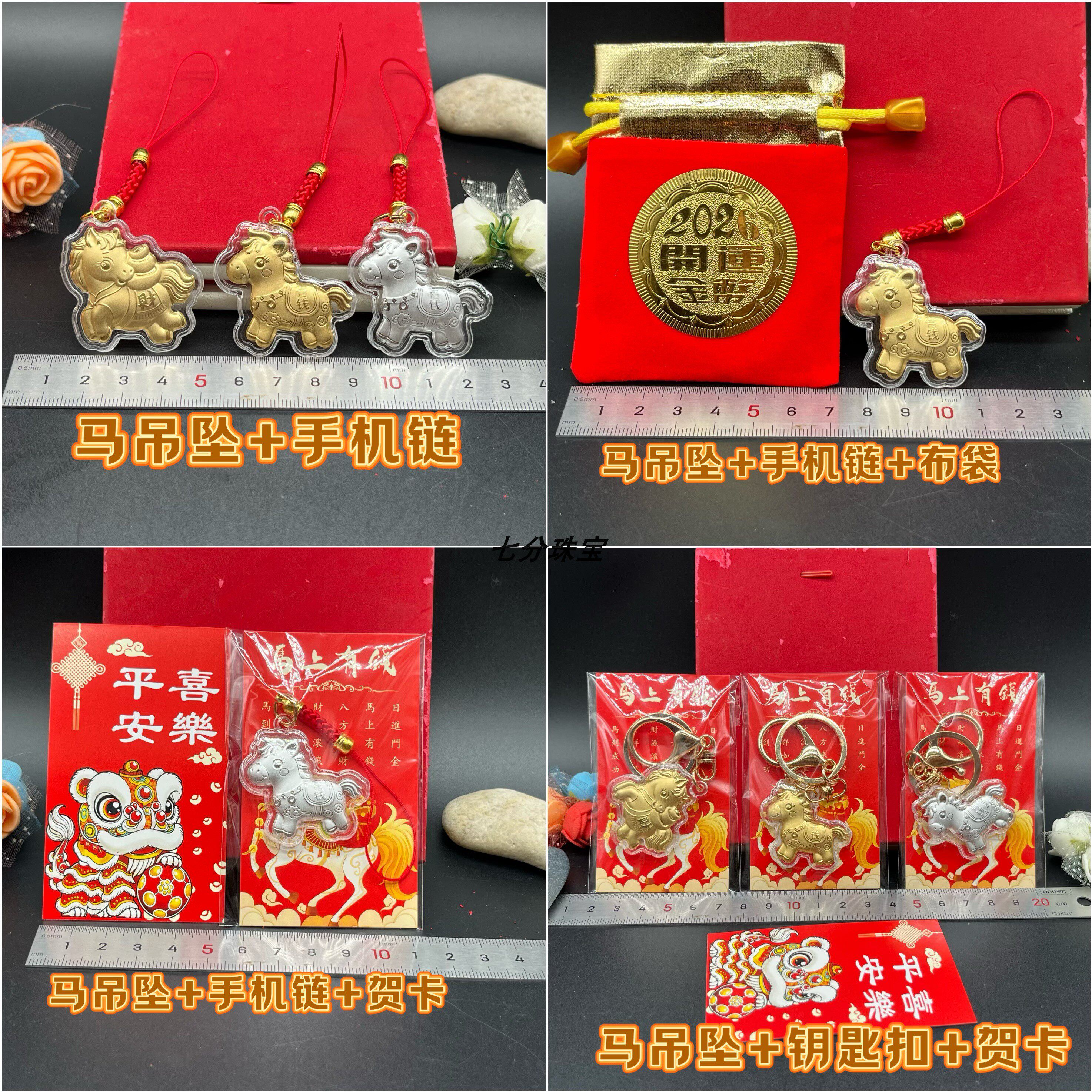 新品2026马年金银吊坠挂件生肖马手机包包 招财保险促销会场礼品