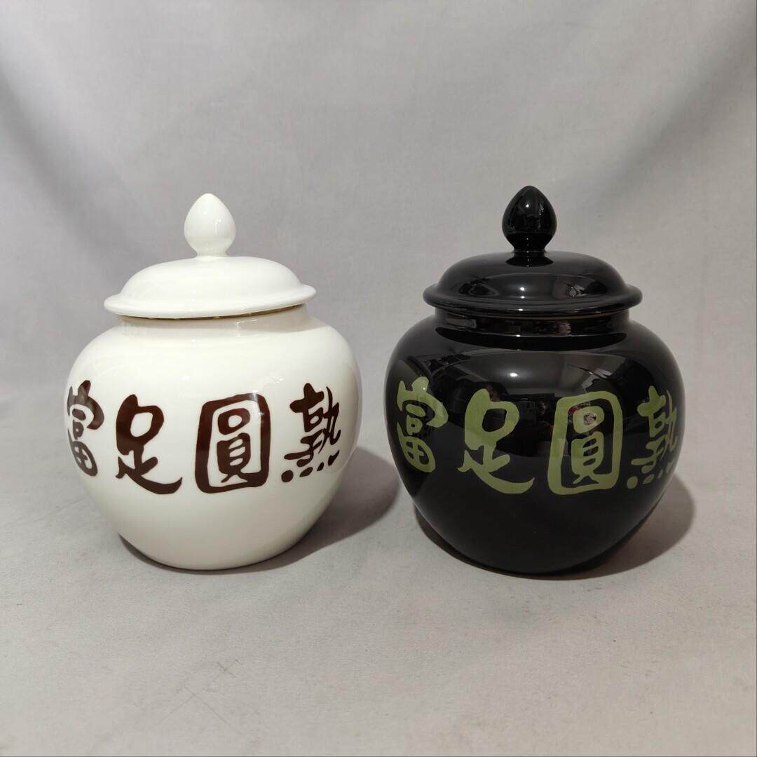 中大号富足圆熟黄红色陶瓷罐易经聚宝盆招财罐子白咖啡色陶瓷摆饰