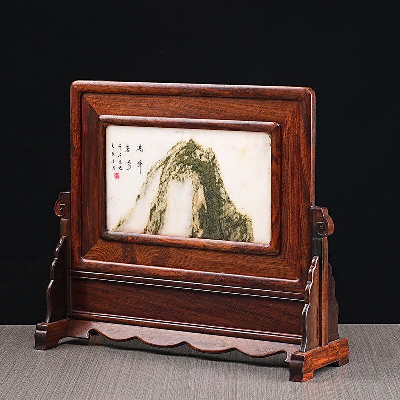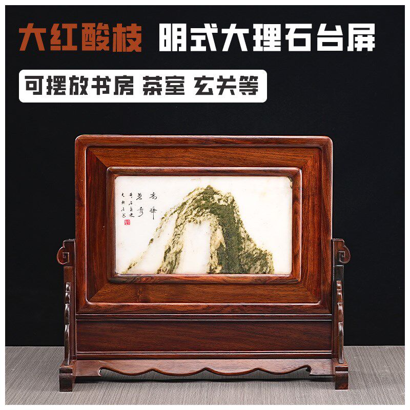 红木插屏台屏摆件老挝红酸枝大理石云石中堂条案装饰画框底座屏风