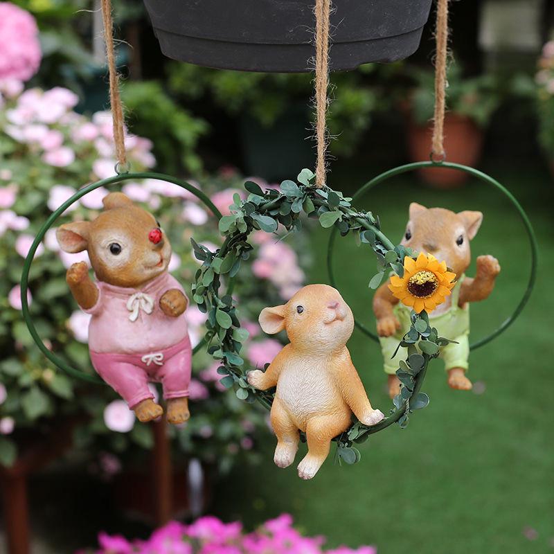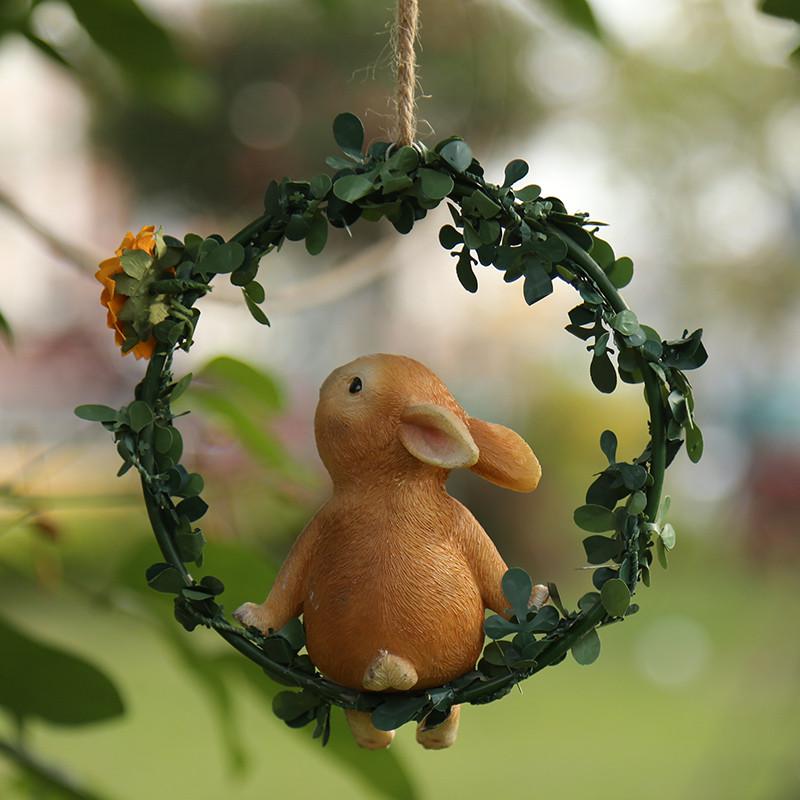 户外庭院装饰品客厅摆件创意阳台动物挂件卡通兔子树脂工艺品雕塑