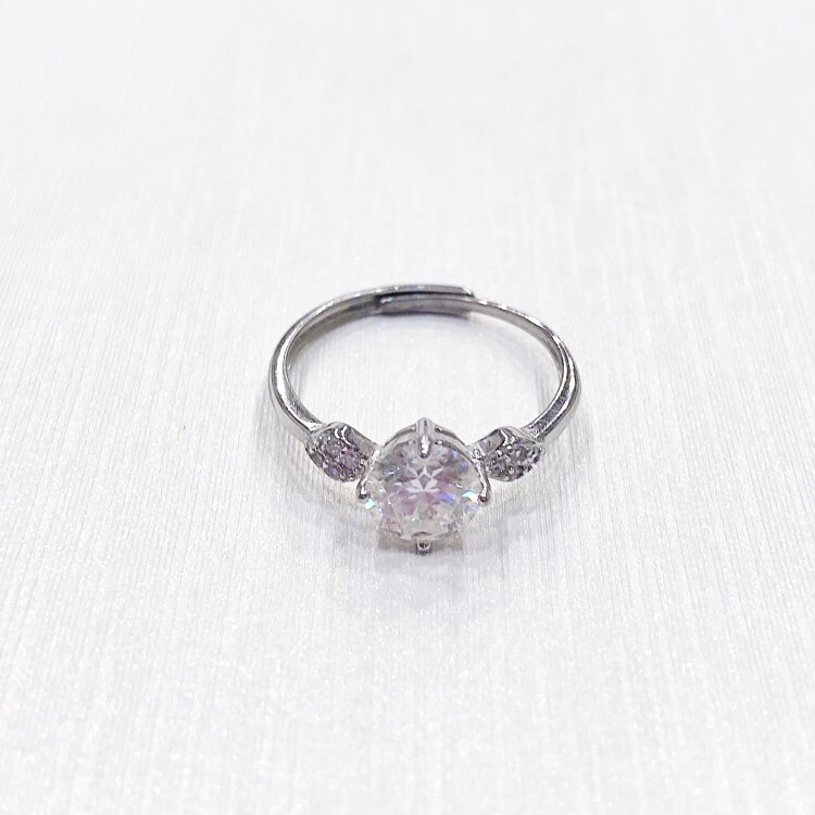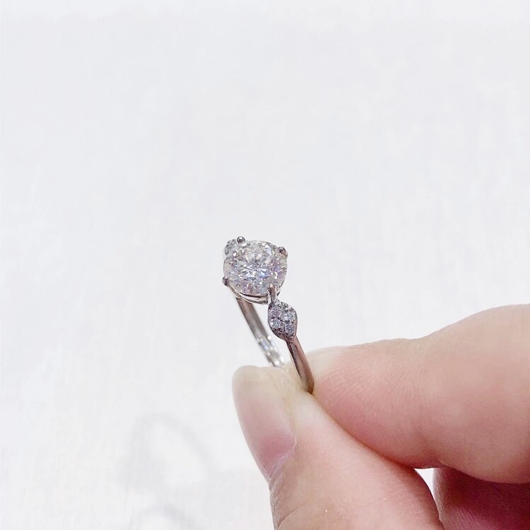 G6# 正品D色莫桑石钻戒1克拉S925纯银四爪求婚戒指6.5mm
