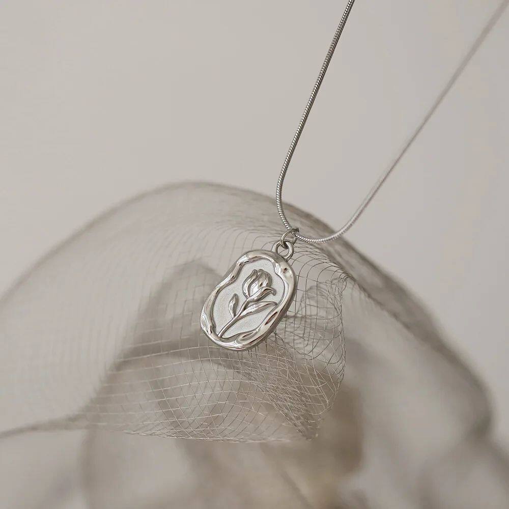 Sainless Seel Fashion Meal Tulip Rose Pendan Necklace Exquis
