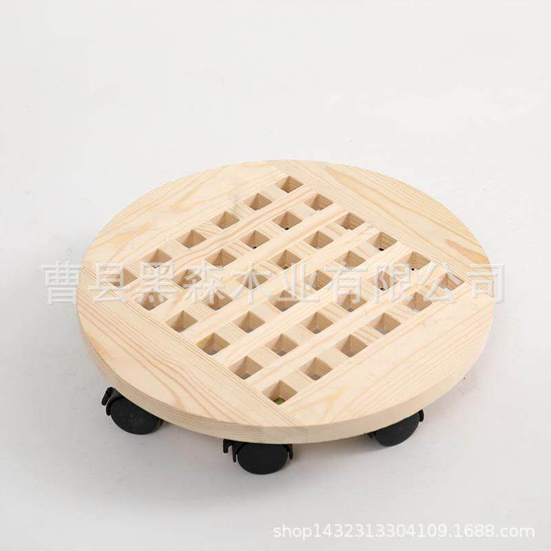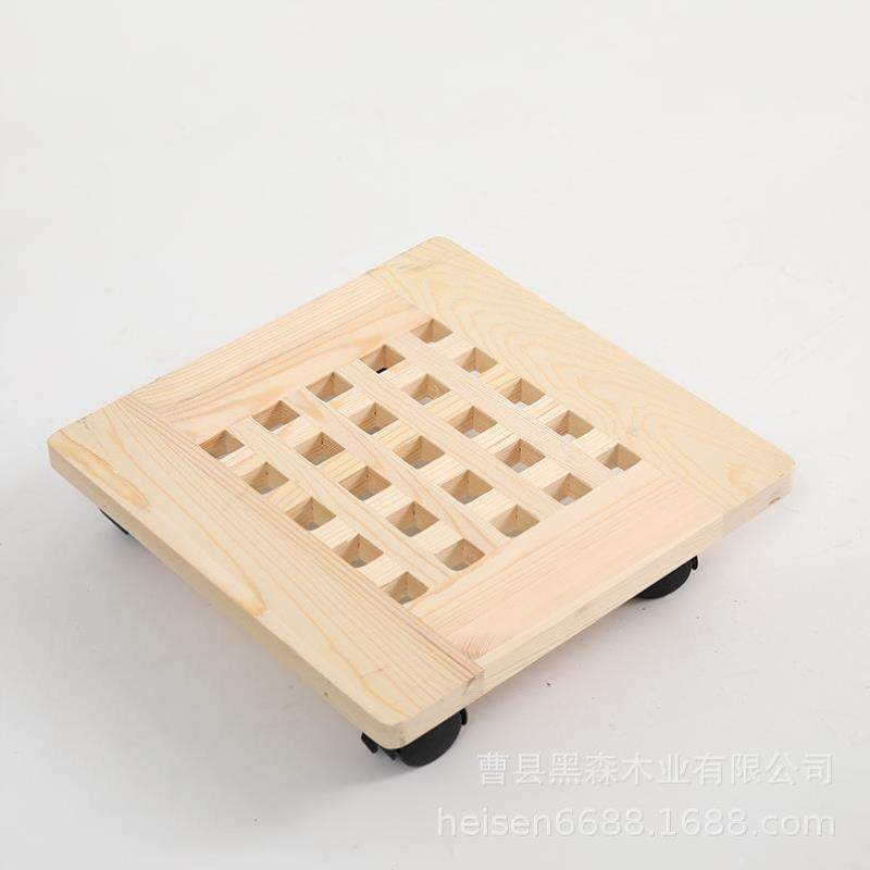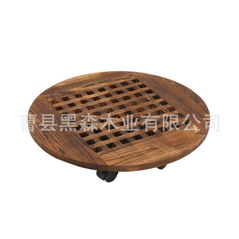 花盆托盘万向轮碳化防腐木长方形圆形实木带滚轮移动花盘底座花托