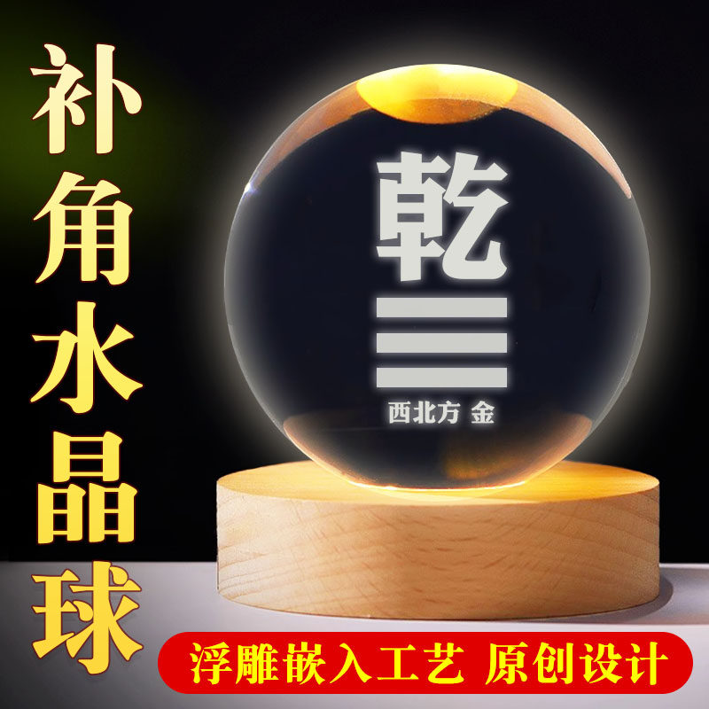 房屋缺角补角水晶球摆件缺西北角乾卦西南坤卦发光白水晶球装饰品