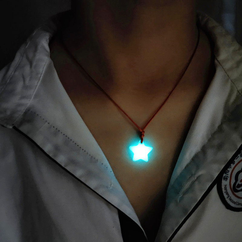 当前位置:首页>商品详情>编织夜光五角星荧光男女项链发光石幸运星星吊坠情侣学生闺蜜配饰