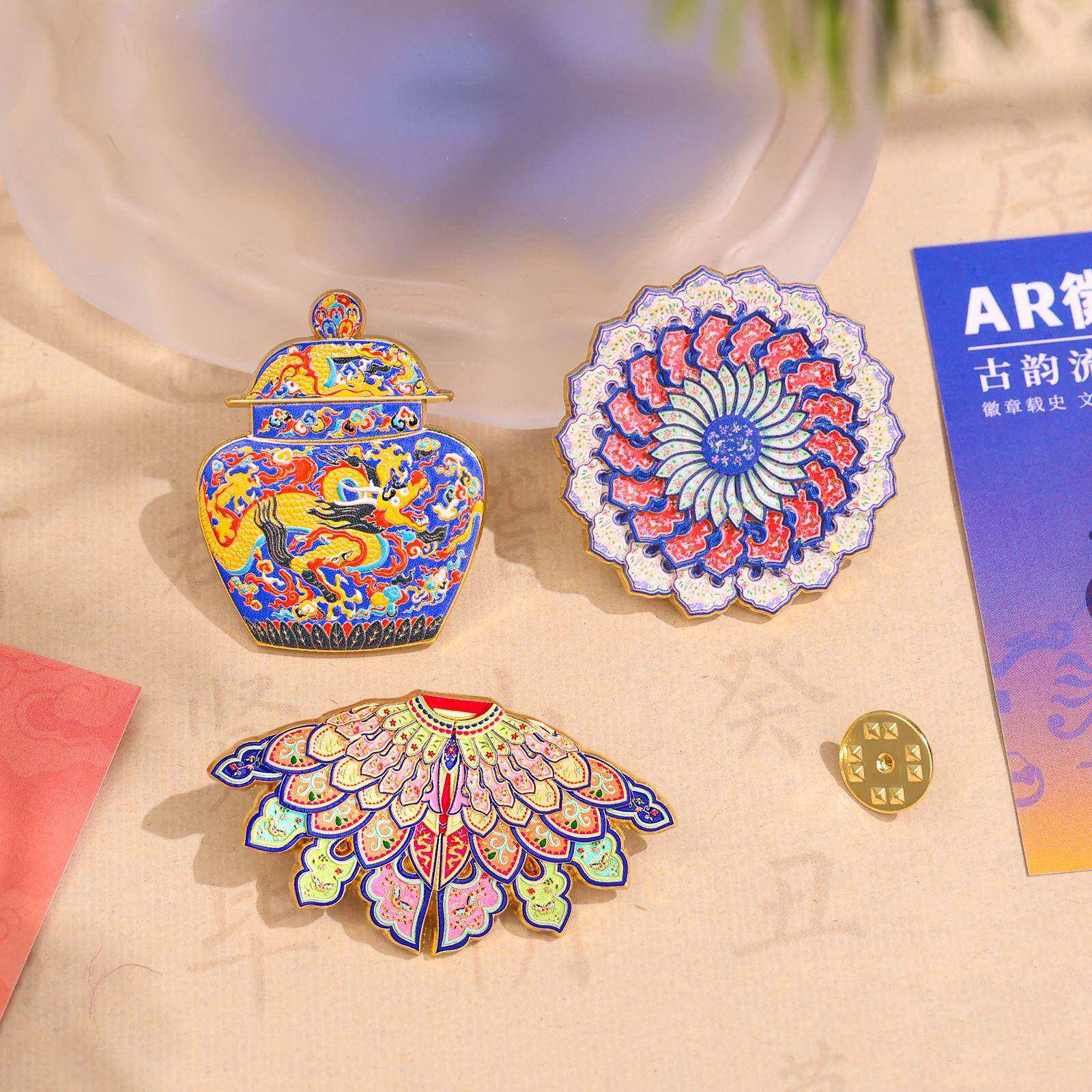 金属徽章定制AR国宝云肩吧唧烤漆滴胶仿珐琅锌合金胸针纪念徽章